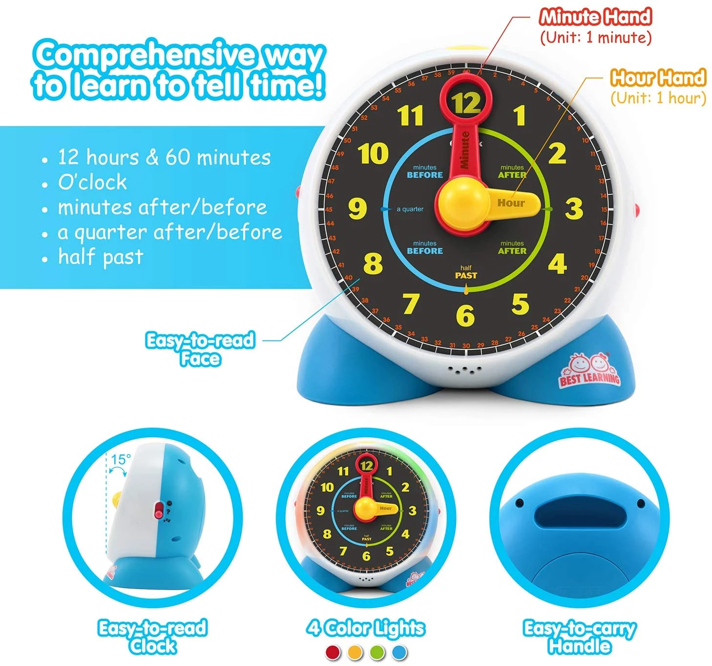 BEST LEARNING Learning Clock - Educational Talking Learn to Tell Time Light-Up