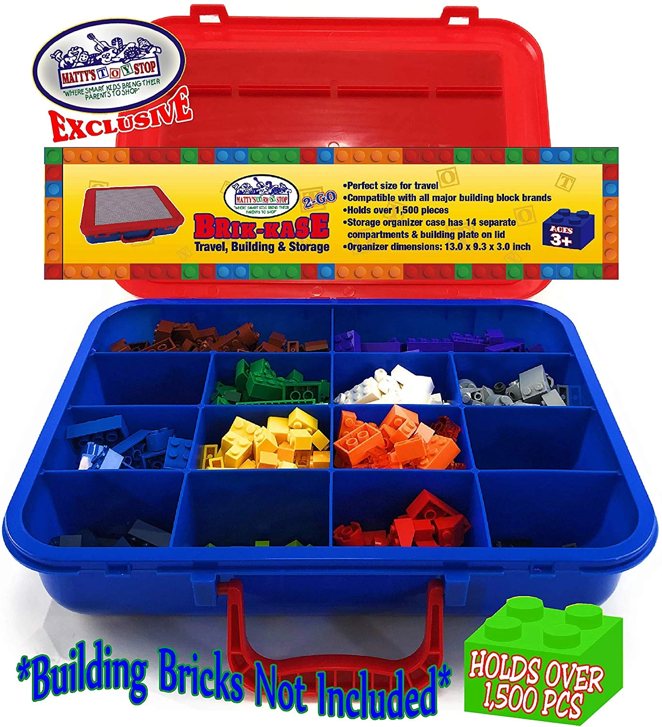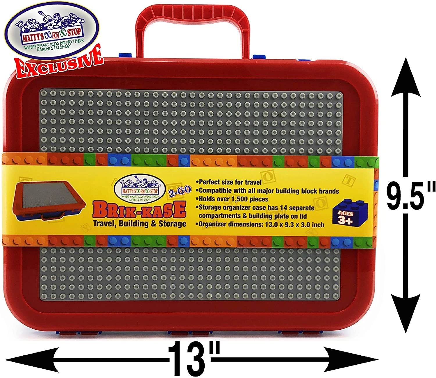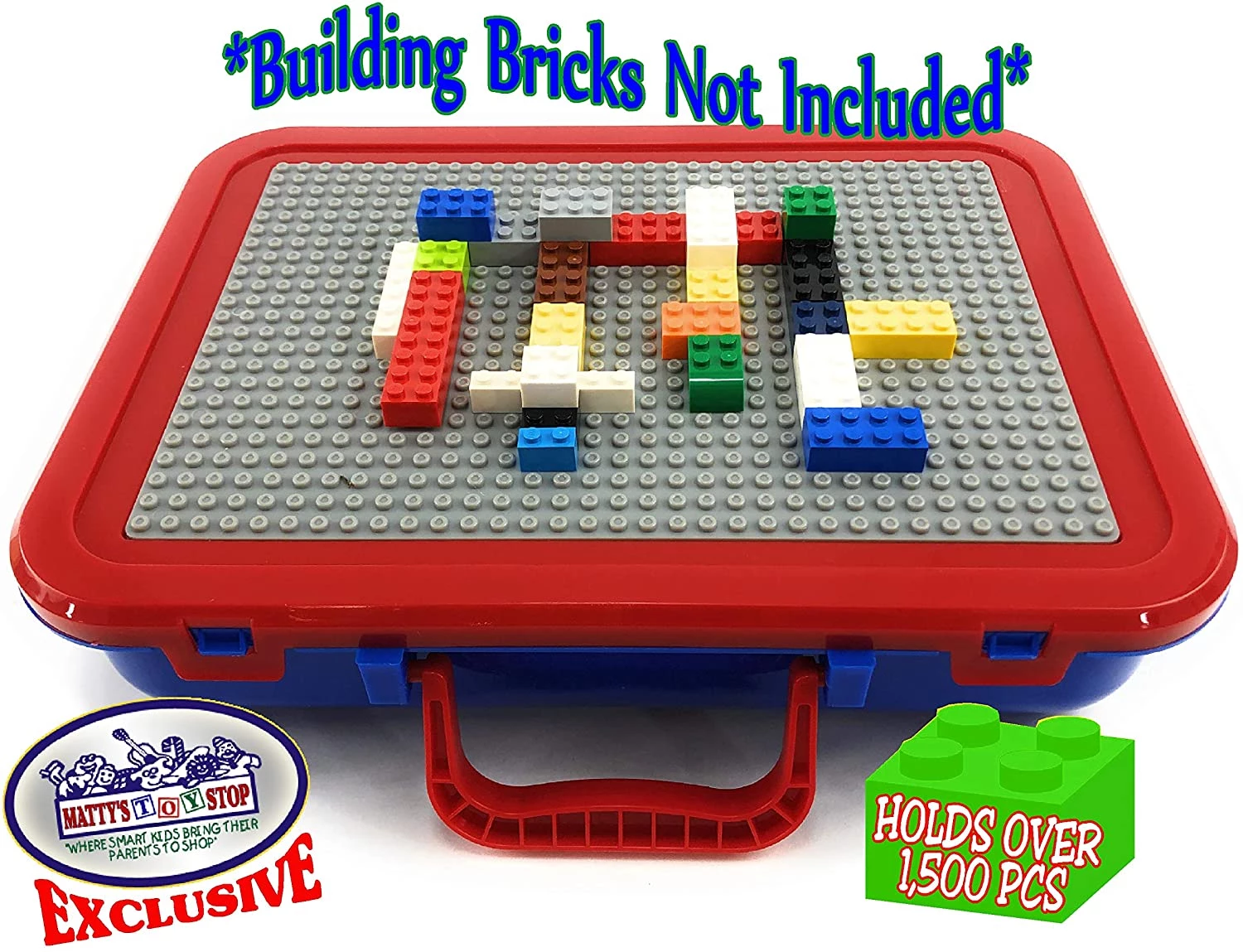 Matty's Toy Stop Brik-Kase 2-GO 13" Travel, Building, Storage & Organizer Container Case with Building Plate Lid