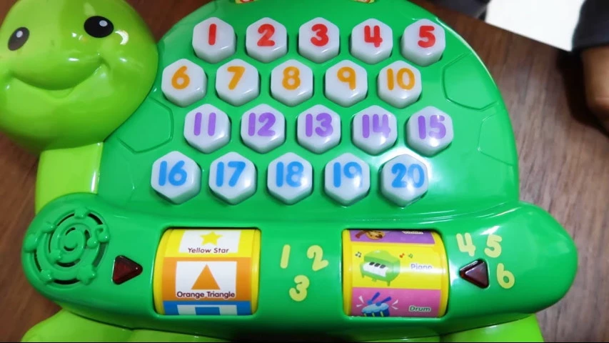 Розвивайте ранні математичні навички за допомогою цієї черепашки. Дитина може натискати кнопки з цифрами, щоб почути як черепашка вимовляє цифру в слух і навчає простому додаванню. Черепаха також має два ролика, які знайомлять дитину з формами, кольорами і інструментами. Можна вибирати різні режими навчання: іспанську мову, цифри, рахунок, кольори, форми та інструменти на іспанській мові.