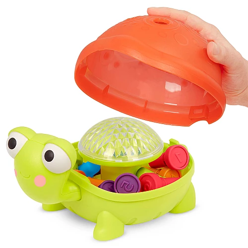 Граючи з цією черепашкою, дитина навчиться рахувати та сортувати пронумеровані кілочки за кольором. Запропонуйте дитині порахувати отвори на панцирі черепашки або придумайте інші цікаві ігри з використанням даного сортера.