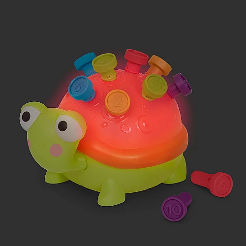 Розвиваюча іграшка «Черепашка-розумниця» - це дуже вдале поєднання веселої незабутньої гри та навчання! Вивчайте кольори, а також цифри від 1 до 10 та весело проводьте час. Для того, аби потренуватися в рахунку малюкові достатньо вставити кожен пронумерований кілочок в панцир черепашці. Іграшка обладнана звуковим та світловим супроводом, що зробить дитячу гру ще веселішою.