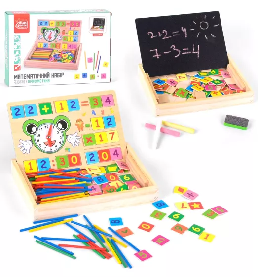 Погодьтеся, виводити цифри в зошиті іноді досить нудно? Набагато цікавіше збирати і вирішувати приклади за допомогою барвистих дерев'яних блоків - саме це буде можливо з дерев'яною математичною дошкою! У комплекті ви побачите різнокольорові палички (для легкого рахунку), набір арифметичних знаків і цифр! Завдяки навчальній, інтерактивній дошці дитина набагато швидше освоїть основні математичні операції, натренує пам'ять і уважність! Ця іграшка - ідеальний подарунок для дітей дошкільного та молодшого шкільного віку!
