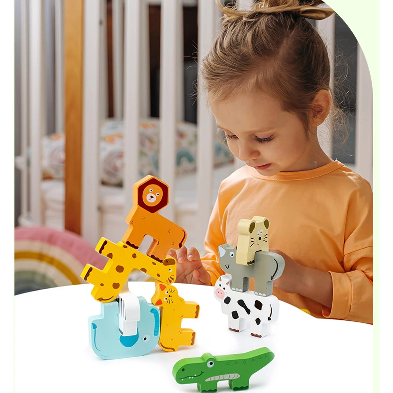 Незвичайна і цікава іграшка ідеально підходить для всебічного розвитку дитини. Тут необхідно зібрати пірамідку з різних елементів, основна особливість в тому, що це не стандартна зборка, а балансир. Дитині потрібно постаратися, щоб скласти конструкцію. Різнобарвні кумедні тваринки розташувалися в хаотичному порядку, малюкові необхідно здогадатися як їх розмістити. Це відмінний набір для розвитку дрібної моторики, координації та логічного мислення.