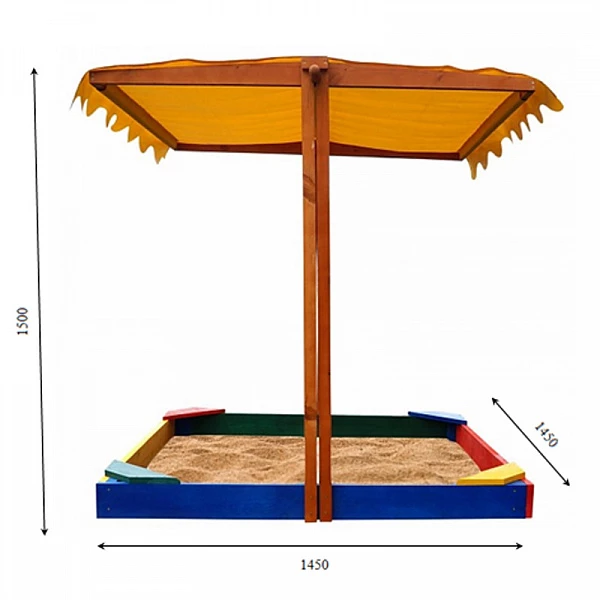 Ця пісочниця ідеально підійде для приватного будинку, дачі або дитячого майданчика багатоквартирного будинку. Зроблена з якісного натурального матеріалу і має приємний дизайн. Лавки, розташовані по кутах, зручні і не займають багато простору, що дозволяє мати більше місця для гри. Приємний дизайн, який буде доречно виглядати в будь-якому дворі. Зручний дах може змінювати своє розташування, що дозволяє прикрити конструкцію і заховати від погодних умов.