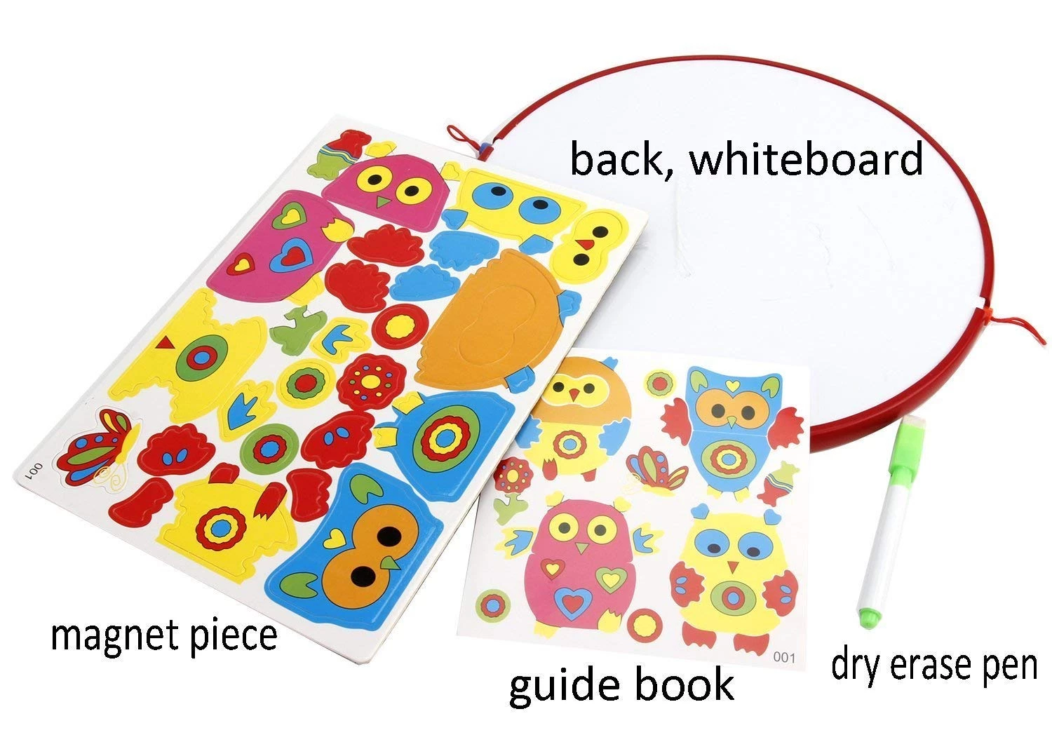 Гра 2 в 1: одна сторона - лабіринт з двома ручками-магнітами, для переміщення кульок через лабіринт, а інша сторона - дошка-мольберт для малювання з стирається ручкою і магнітними совами.