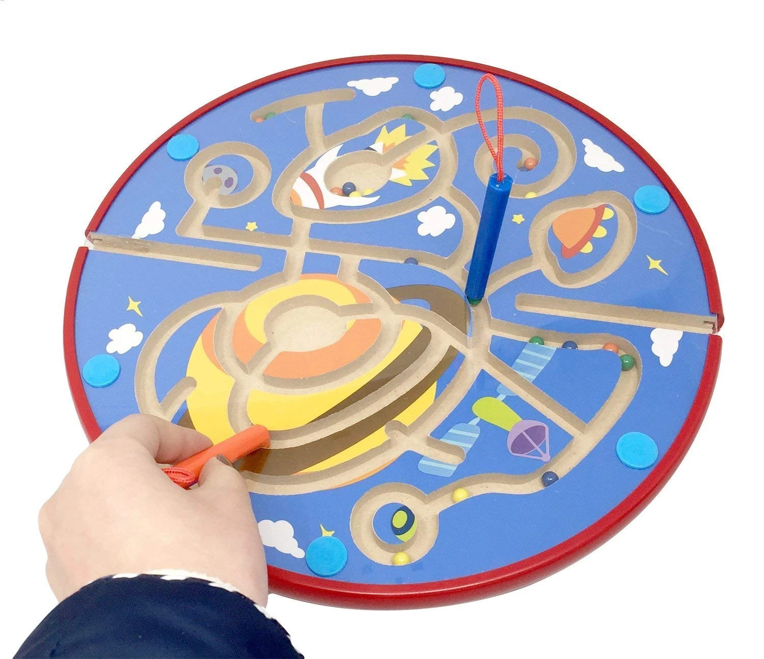 Нехай дитина водить кульки через лабіринт, використовуючи магнітну ручку.