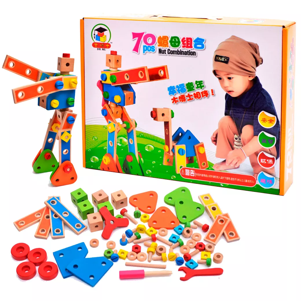 Розвиваючий дерев'яний набір конструктор (70 деталей) від Obetty