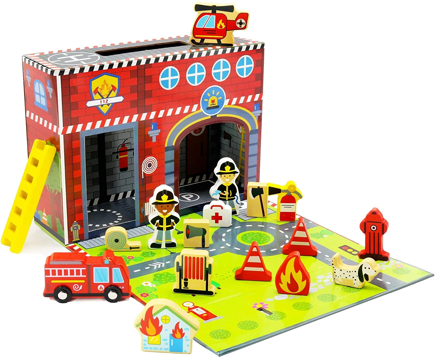 Фігурки набору зроблені вручну з міцного якісного дерева. Відмінний спосіб познайомити дітей з пожежною безпекою.