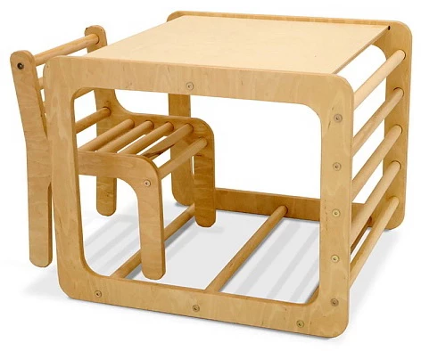 Комплект "Кубик" - це універсальне рішення для дитячої кімнати, адже його можна використовувати для навчання, прийняття їжі, розваг і творчості. Зручна анатомічна конструкція стільчика дозволяє дитині розміститися з комфортом. Вироби виконані з натурального дерева, тому гіпоалергенні. Закруглені кути призначені для максимальної безпеки при експлуатації. Комплект має невелику вагу, щоб навіть дитина змогла його пересувати.