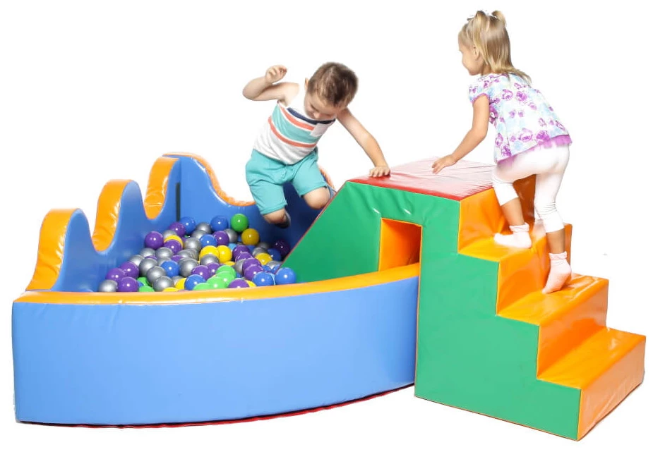 Басейн малогабаритний і з хвилястими стінками. Гра в сухому басейні розвиває м'язи і мислення.