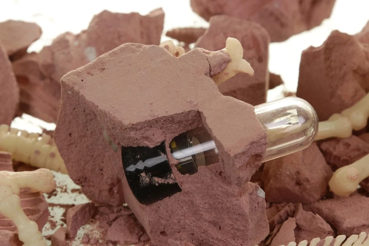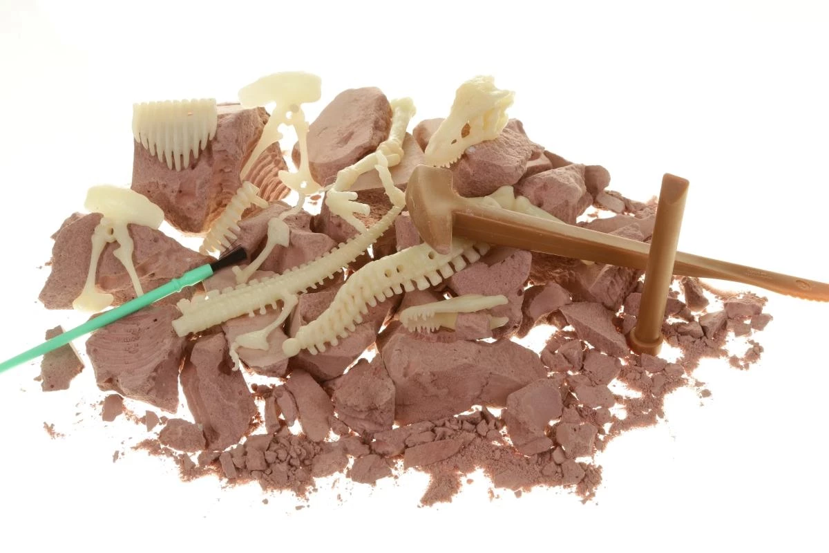 - 1 гіпсовий блок з частинами скелета динозавра і капсулою з ДНК,