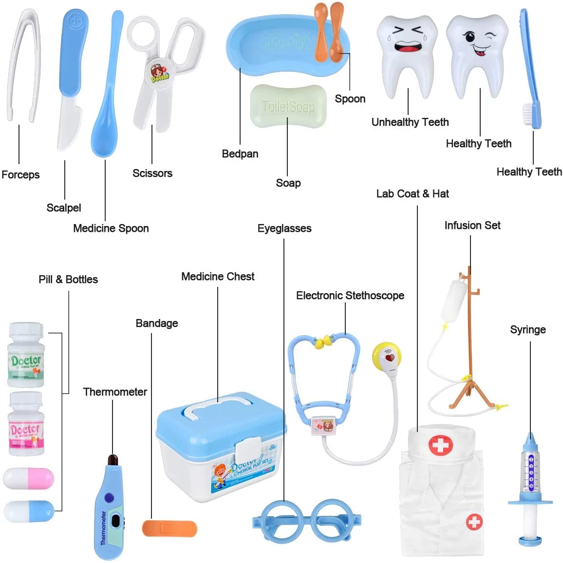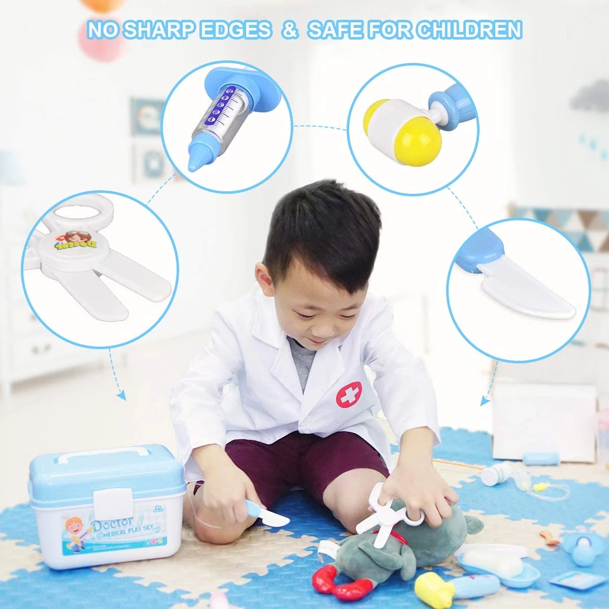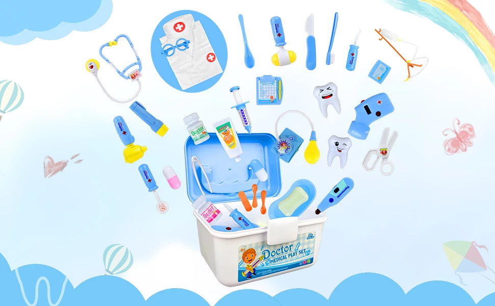 Реалістичний набір іграшкового лікаря може допомогти дитині зрозуміти і ознайомитися з медичними процедурами лікаря, такими як прослуховування легких при кашлі, відкриття рота, щоб перевірити свої мигдалини, прояв співчуття і турботи про інших. Або, прикинувшись, що стоматолог чистить зуби, а аптечка вчить дитину знайомитися з усіма гаджетами і обладнанням, використовуваними лікарем.