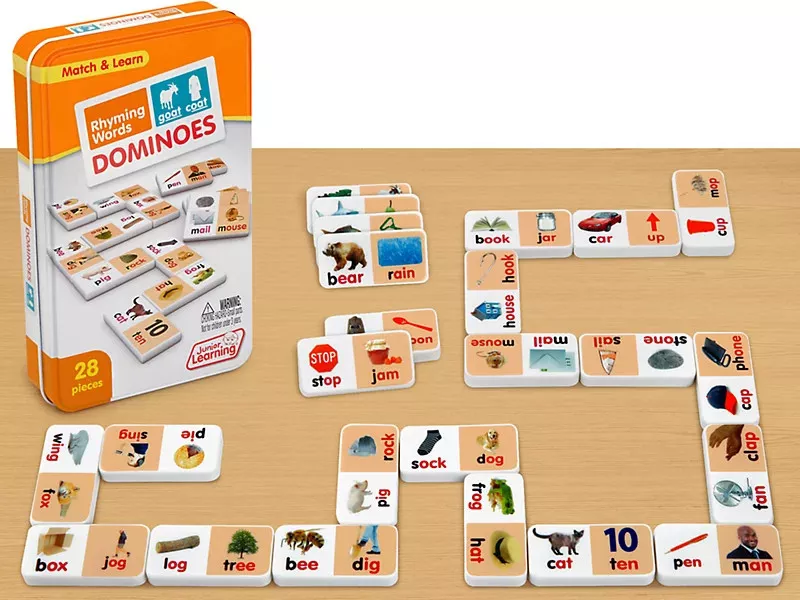 Римоване доміно від Lakeshore не прив'язане ні до якої теми, оскільки тут представлені різні слова. Тому ігровий набір є ідеальним вибором для навчання англійській мові.