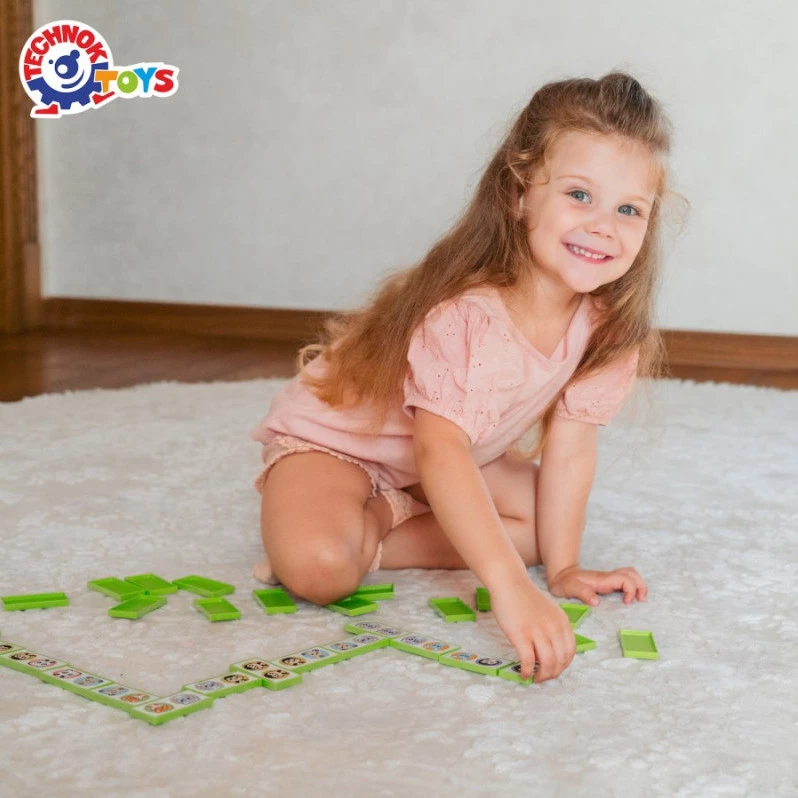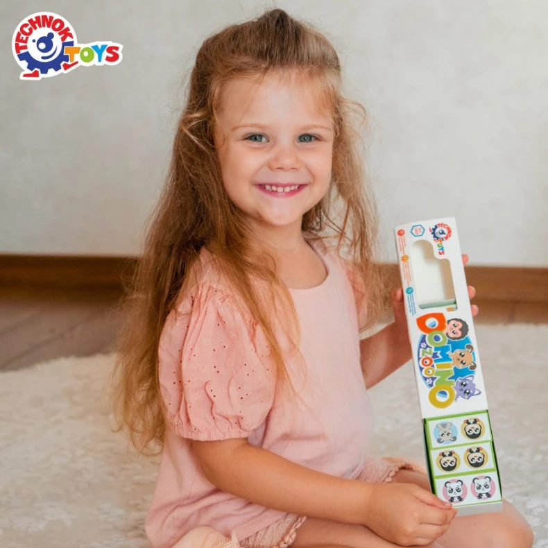 Пропонуємо до вашої уваги захопливу настільну гру для дітей доміно «Зоопарк». Набір включає 28 кольорових кісточок із зображенням тварин. Правила гри такі самі, як і у «дорослого» доміно. У процесі гри діти тренуватимуть уважність та зорову пам'ять. Ця гра – чудова можливість провести дозвілля весело та з користю.
