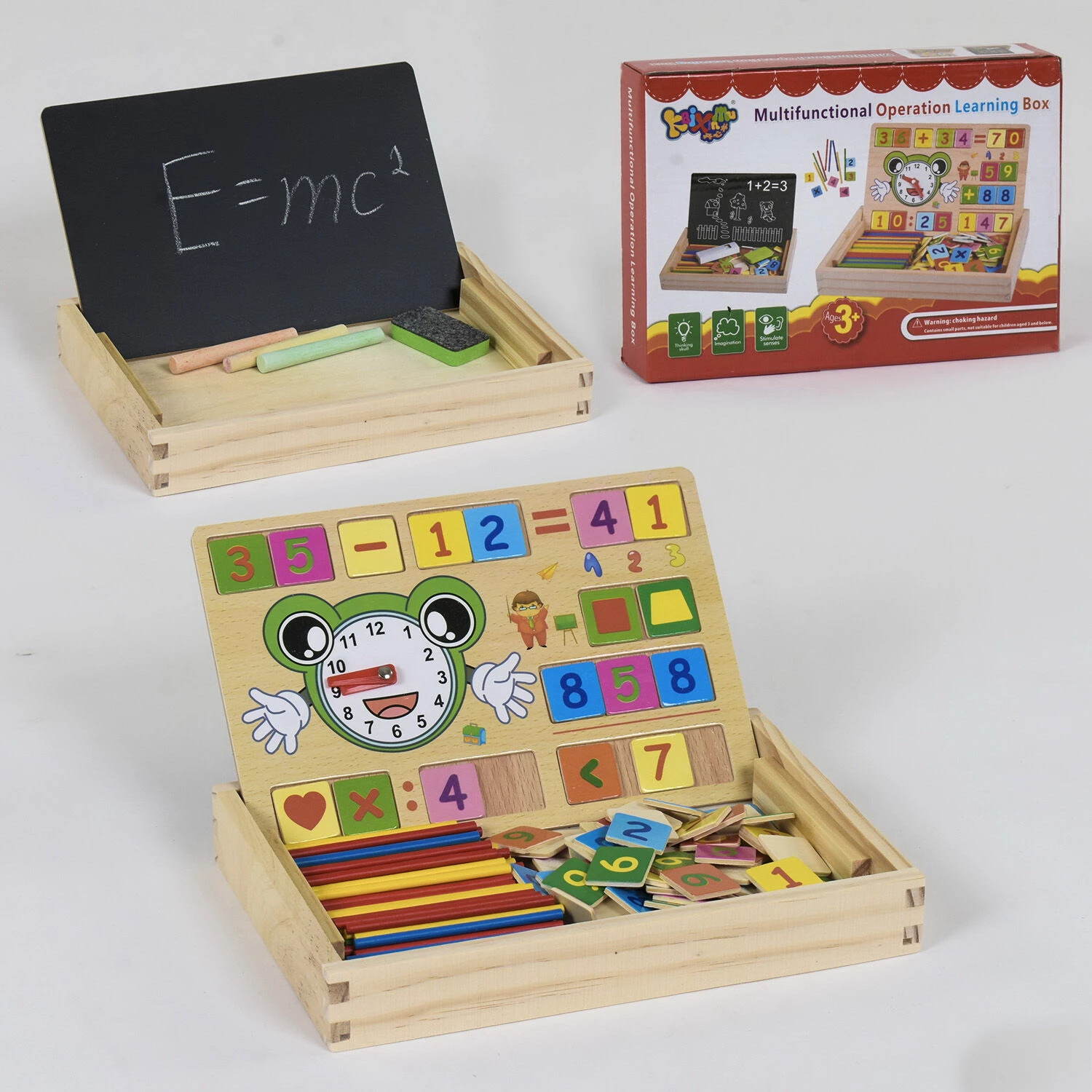 Математика це захоплююча наука, а за допомогою даної дерев'яної дошки її вивчати буде ще простіше! Вона включає в себе відразу кілька можливих варіантів гри: дитина може працювати з дошкою за допомогою крейди, а може грати з фішками і їх кріпленням в спеціальні отвори. Комплект складають ці самі фішки арифметичних знаків і цифр, циферблат годинника з рухомими стрілками, палички для легкого рахунку, а також набір крейди для малювання! Дитина в форматі гри буде дізнаватися нове зі світу завдань і прикладів, розвивати дрібну моторику, логіку і уважність!