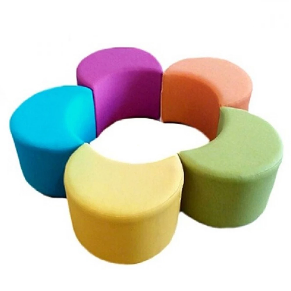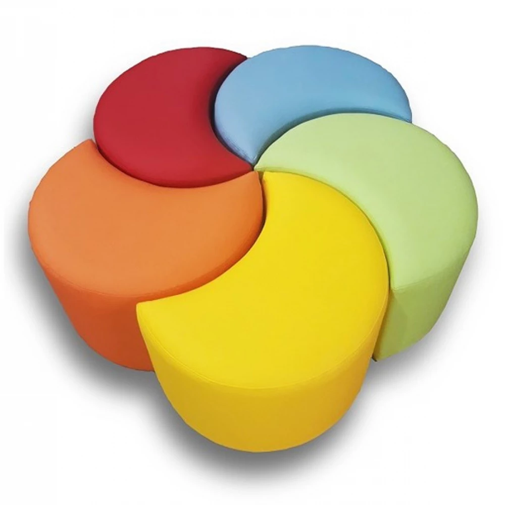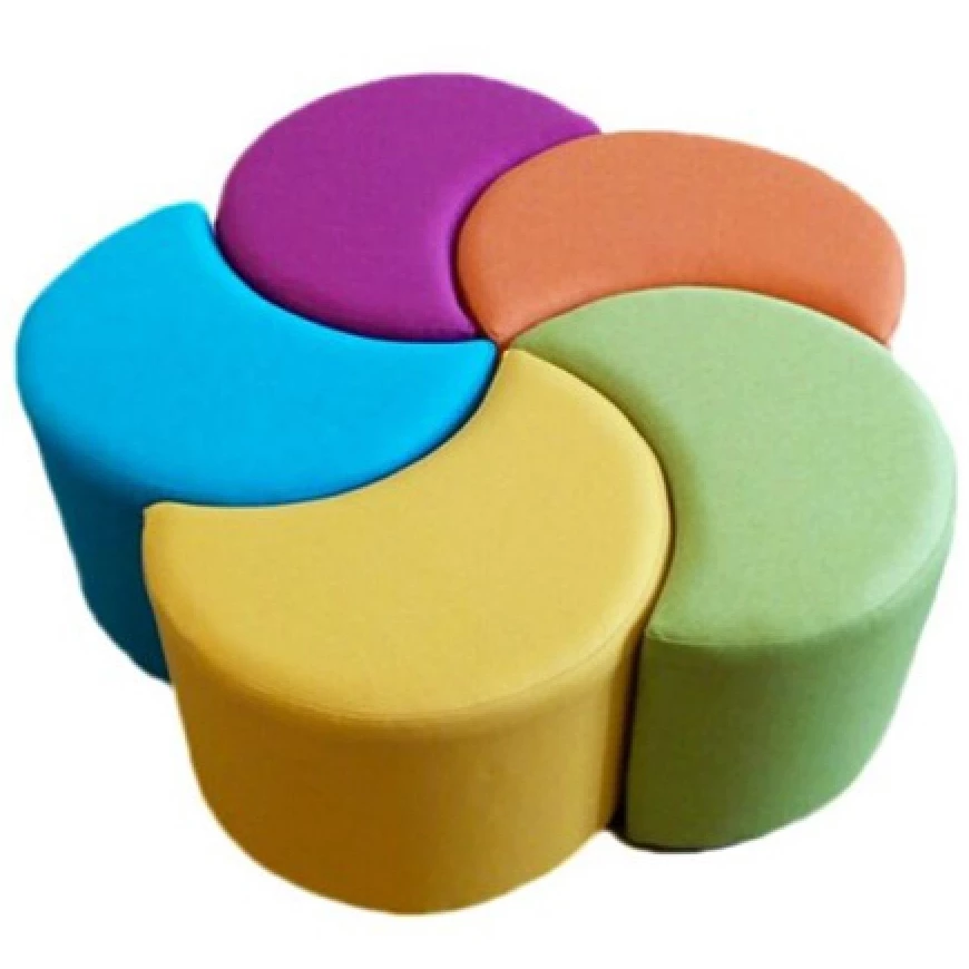 Представляємо вашій увазі комплект з п'яти різнокольорових пуфів, які стануть чудовим рішенням для дитячої кімнати чи різноманітних дитячих закладів. Одна з головних переваг модульних меблів полягає в тому, що, крім свого призначення, м'які модулі можуть використовуватися для дитячих забав.