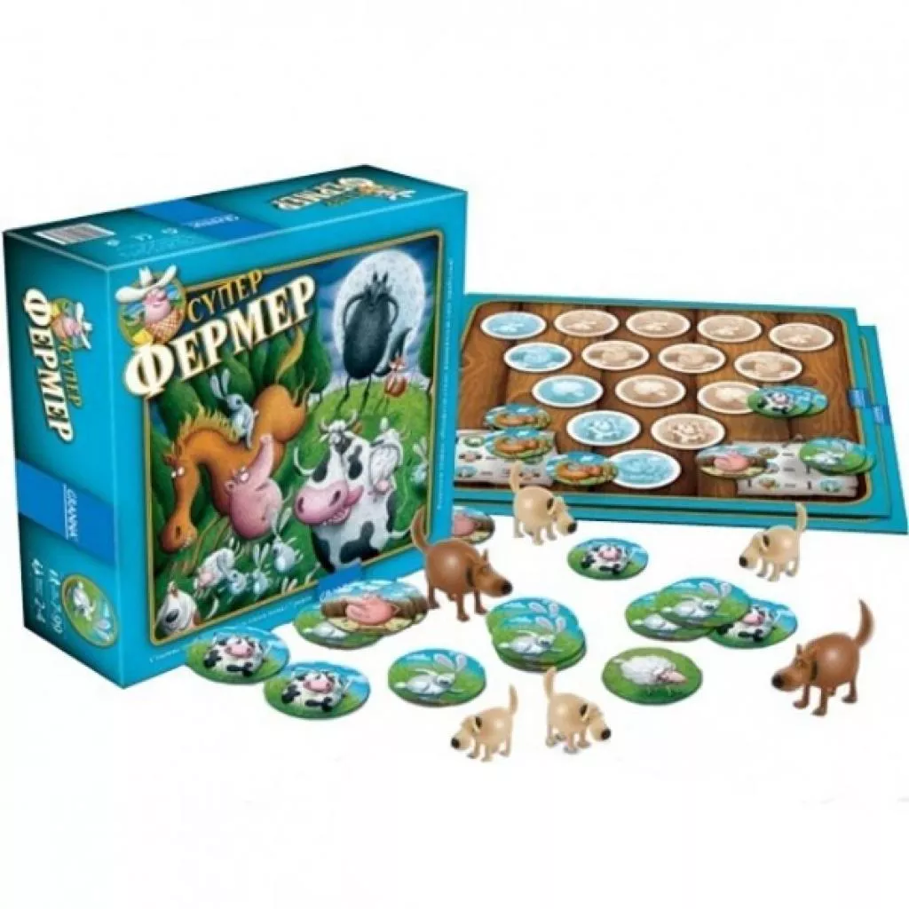 Чудова настільна гра для всієї родини. У ній треба доглядати за домашньою худобою, стригти, прибирати, годувати і захищати від хижаків. З цією грою не доведеться нудьгувати. Завдання гри - це зібрати якомога більше різновидів домашніх тварин і стати Суперфермер. На фермі живуть корови, вівці, свині і кролики, собаки, що захищають худобу, і хижаки, які хочуть потягти тварин. Після обміну тварин, ви зможете отримати собаку. Прекрасна гра для того, щоб урізноманітнити свій повсякденний дозвілля.