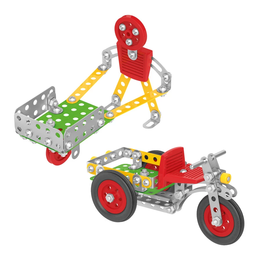 Створіть різні моделі сільськогосподарської техніки за допомогою цього чудового набору фірми ТехноК, який складається з 235 деталей. Конструктор складається з металевих та пластикових елементів, які дозволяють створювати міцні конструкції з реалістичним дизайном. Кольорова інструкція допоможе маленьким будівельникам зібрати 8 різних моделей сільськогосподарської техніки.