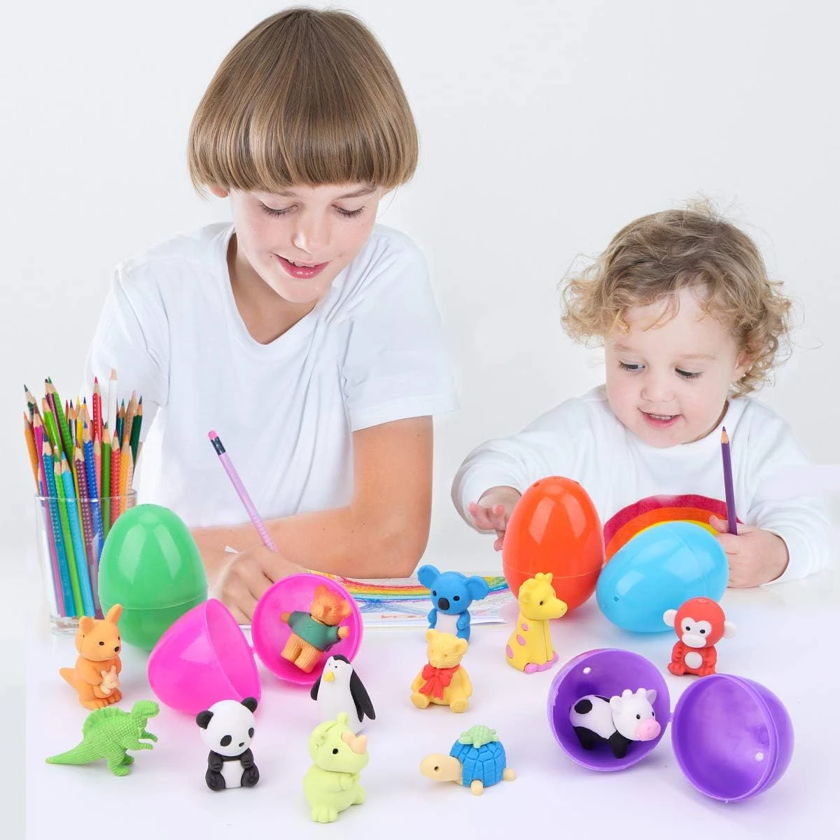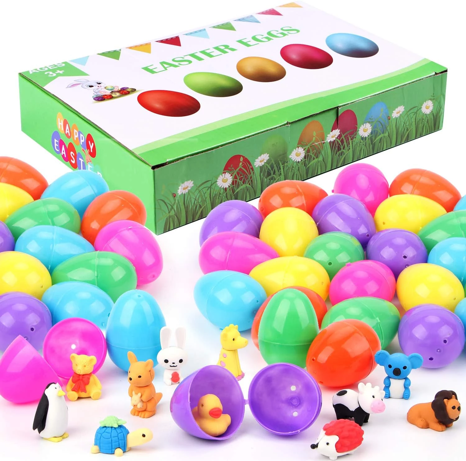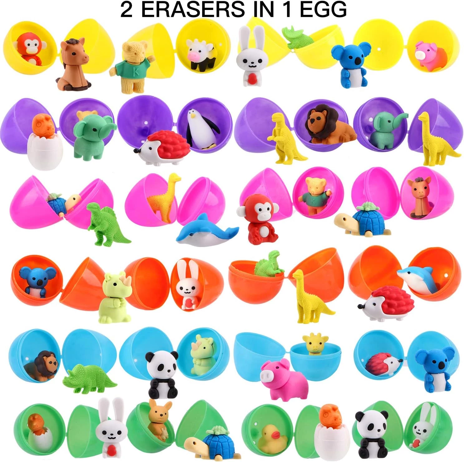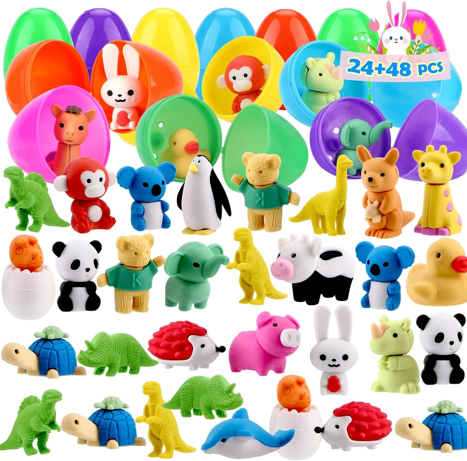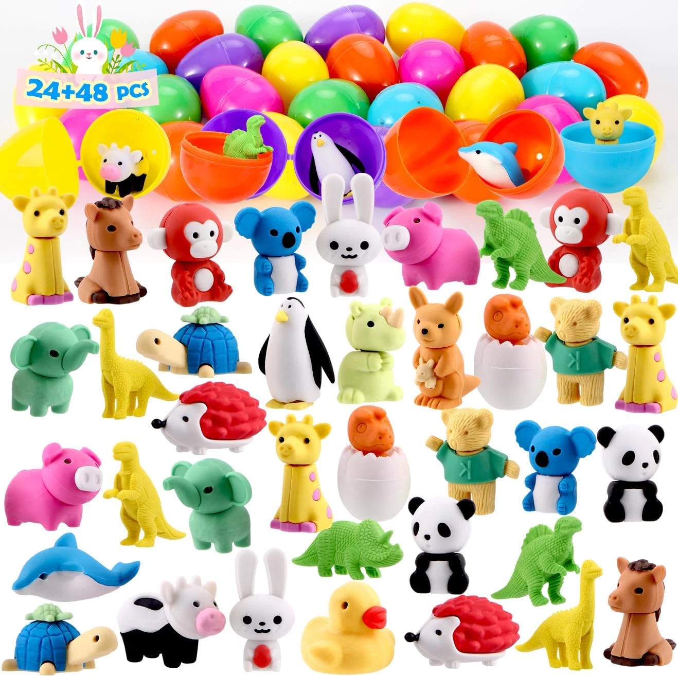 24 Pcs Prefilled Easter Eggs with 48 Animal Erasers
