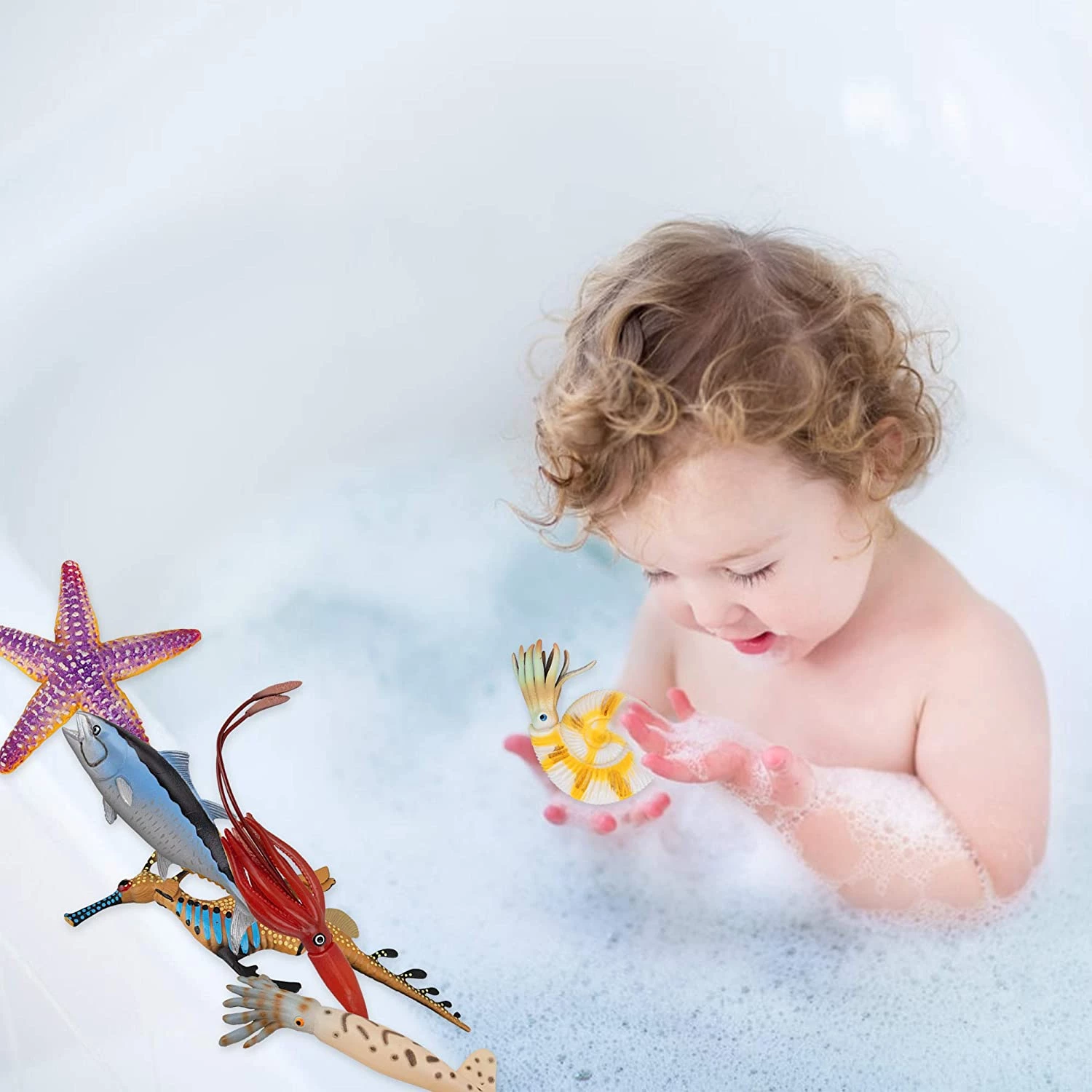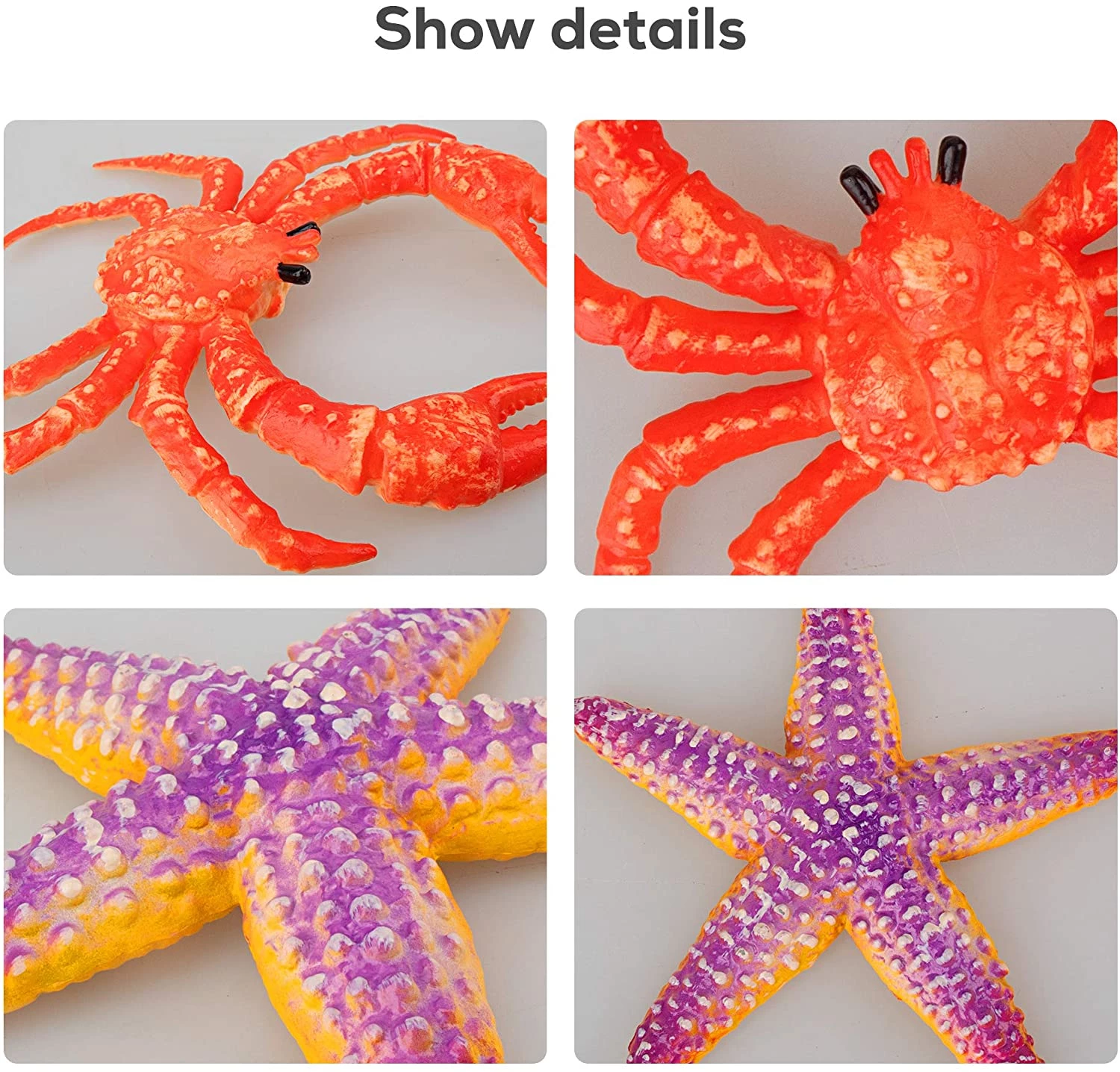 Toymany 8PCS Plastic Sea Ocean Animal Figurines Bath Toy with Crab