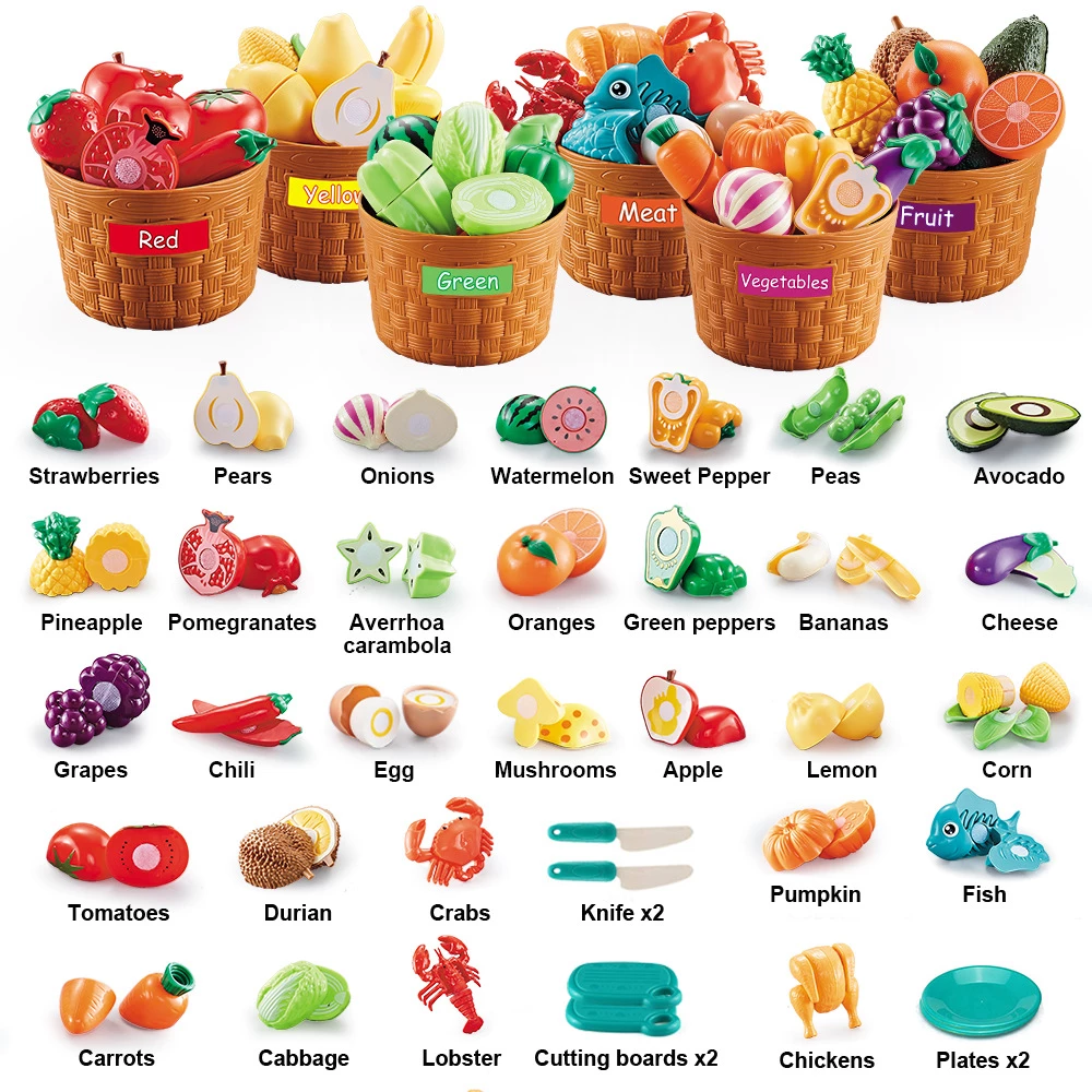 Розвивайте навички розпізнавання кольору і сортування. Дуже добре підходить для сюжетних ігор. Також розширює базовий словниковий запас і сприяє залученню дитини до здорового харчування. Рольові ігри - відмінний спосіб поліпшити зорово-моторну координацію, розвинути соціальні та комунікативні навички. Також знайомить з основними поняттями дробів і частин.