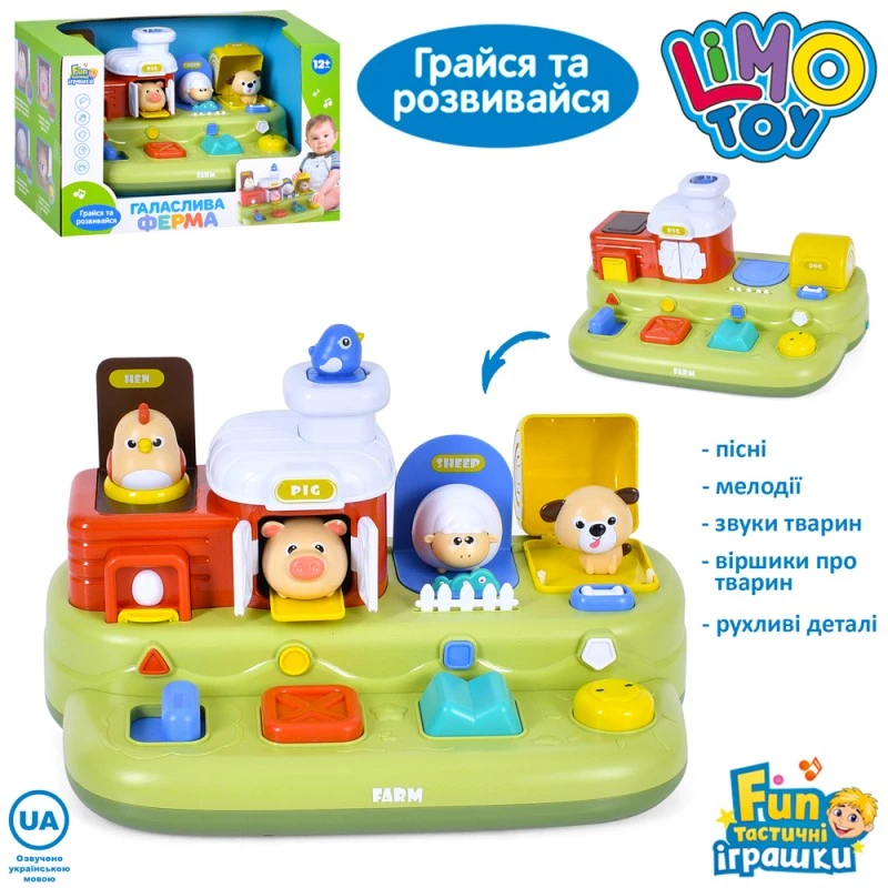 Познайомте допитливого малюка з милими домашніми тваринами, які мешкають на веселій фермі, використовуючи інтерактивну іграшку від торгової марки Limo Toy.