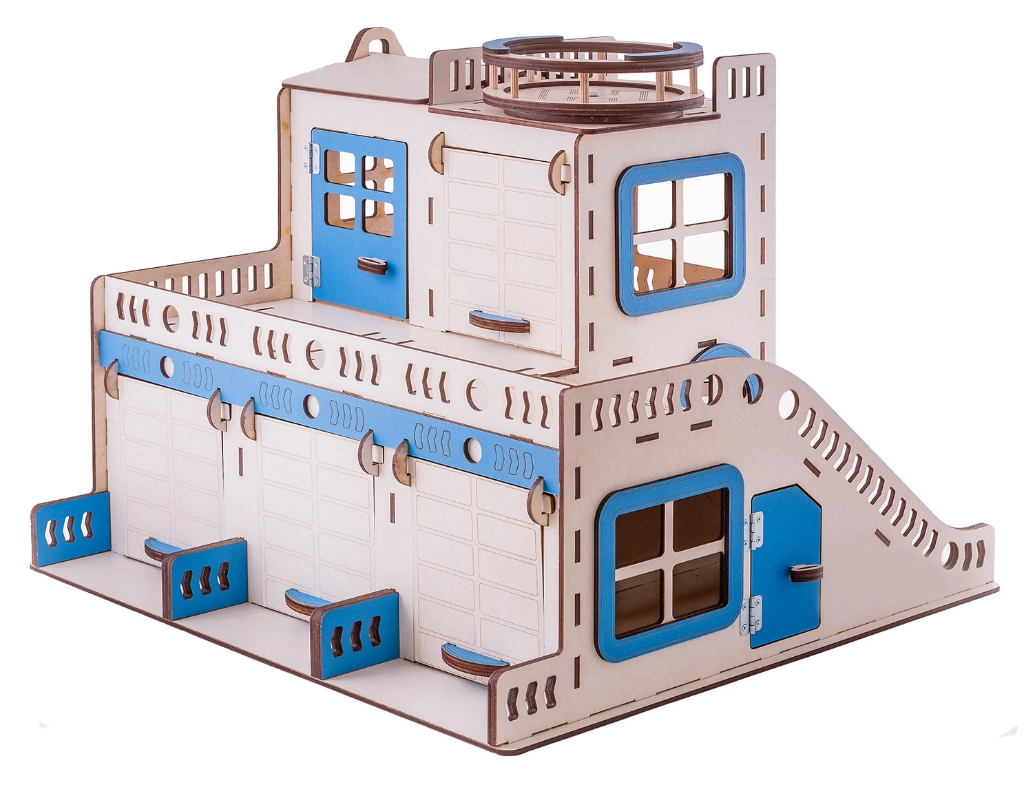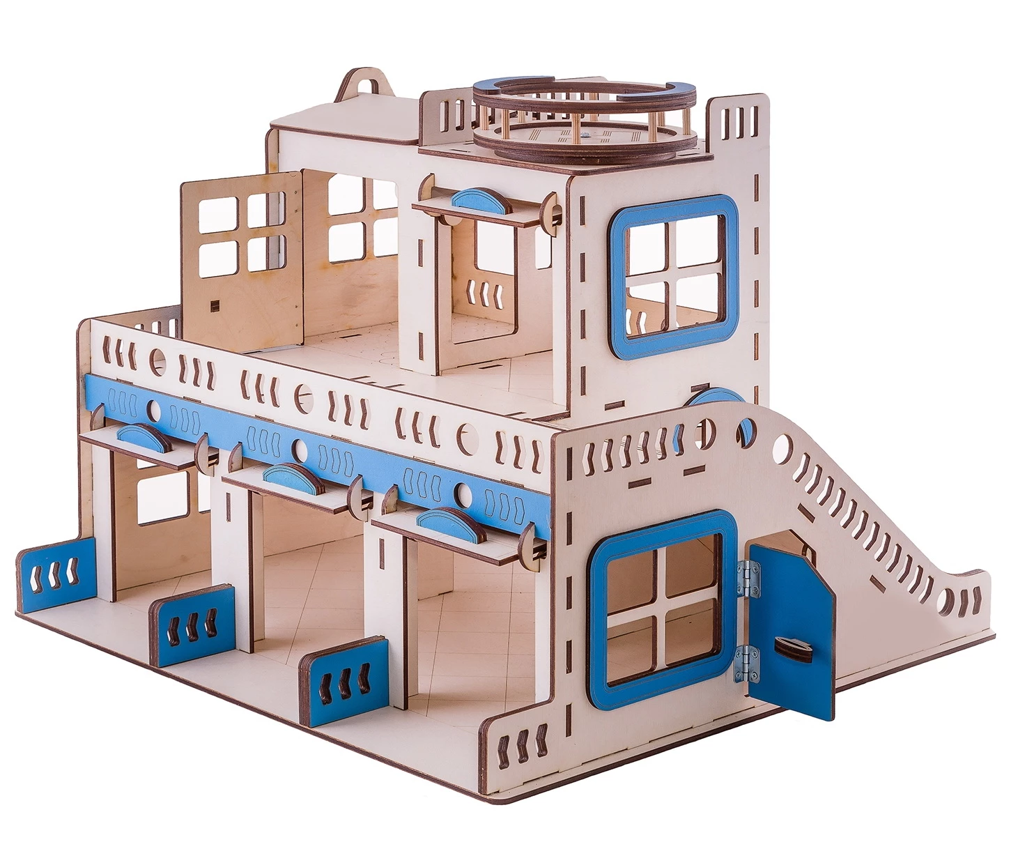 Гоночні треки і гаражі - завжди захоплюють хлопчаків на довгий час. Цей двоповерховий дерев'яний гараж з треком - чудова розвиваюча іграшка. У гаражі є бокси і спуски для машинок, а ще - вертолітний майданчик на даху.