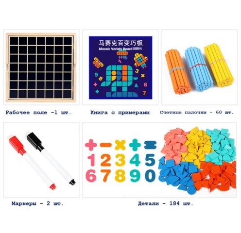 Велика головоломка мозаїка чудово підходить для розвитку фантазії, дрібної моторики і логічного мислення. У зручній дерев'яній коробочці з відсіками є безліч різних елементів, за допомогою яких можна збирати всілякі картинки. Це прекрасний варіант для розвиваючих занять як в групі, так і вдома. Дуже добре підходить для дитячих садків, шкільного приладдя або занять в класі!