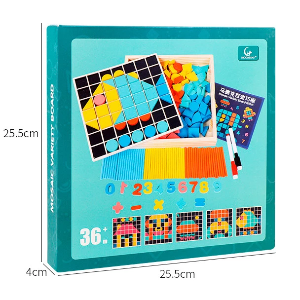Головоломка компактна, її легко можна взяти з собою і зручно зберігати. У наборі є цифри, дитина зможе вивчити рахунок і прості математичні операції. Дерев'яні блоки з візерунками - це захоплюючий і творчий спосіб для ваших дітей вивчати форми. Зберіть все блоки разом, складіть безліч різних візерунків в своїй уяві. такі як будинок, квітка, слова, математична геометрія, слон, метелик і інші тварини.