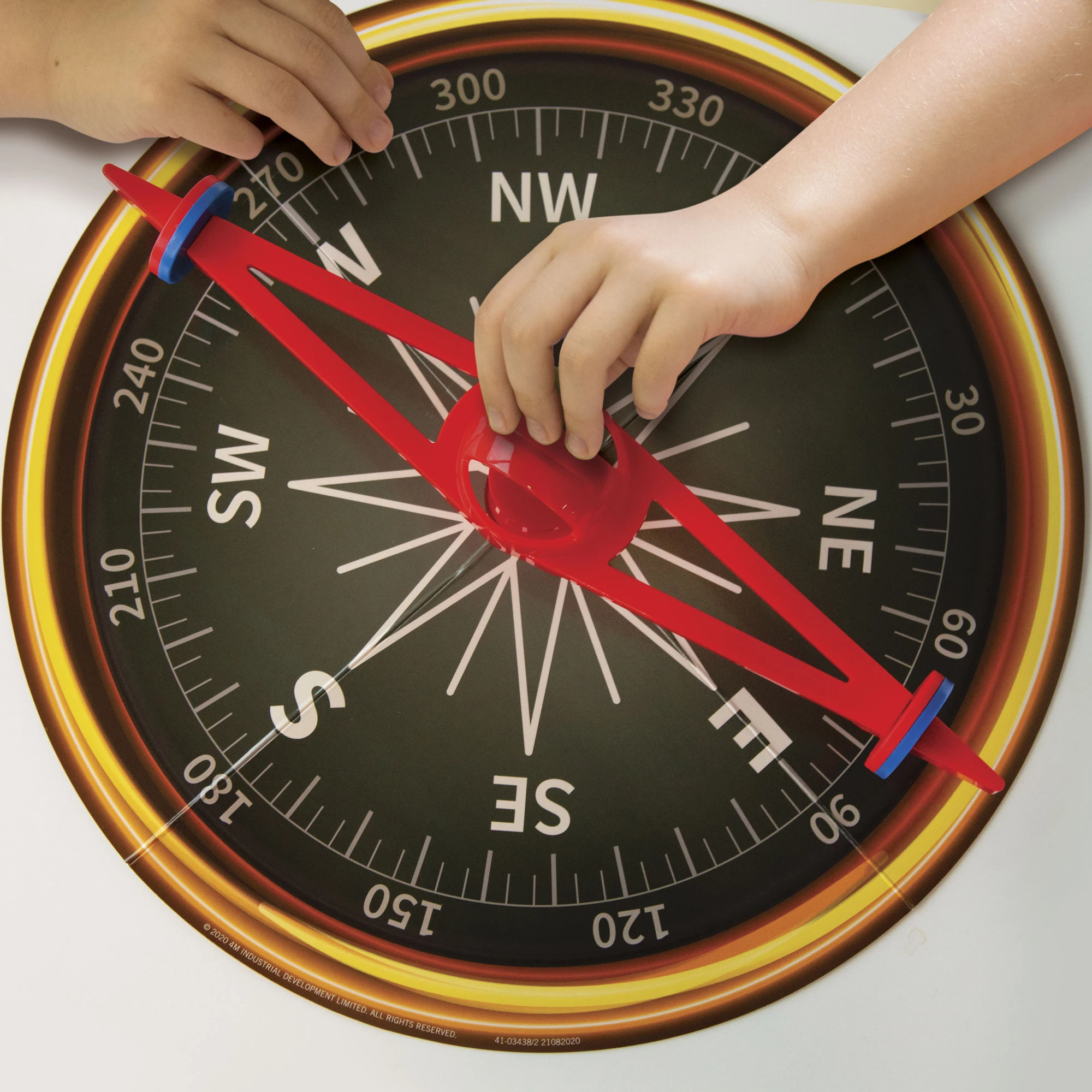Перед використанням компаса переконайтеся, що поблизу немає металевих предметів і відсутній сильний вітер. Натисніть стрілку компаса. Вона обертається та зупиняється червоним кінцем магніту на північ. Поверніть коло таким чином, аби літера N опинилась під червоним кільцем магніту.