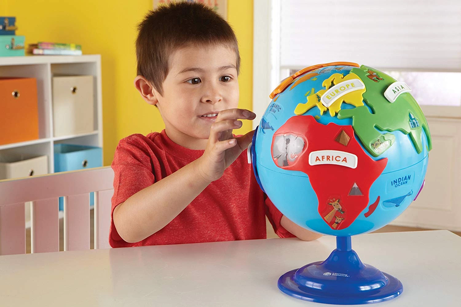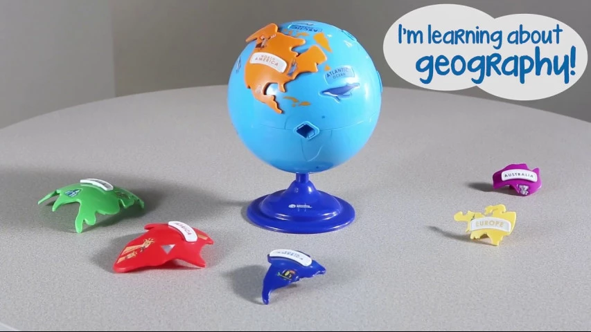 Кожна частина пазла головоломки поміщається в один отвір на глобусі, що дозволяє малюкам легко зрозуміти і розмістити їх в правильному місці.