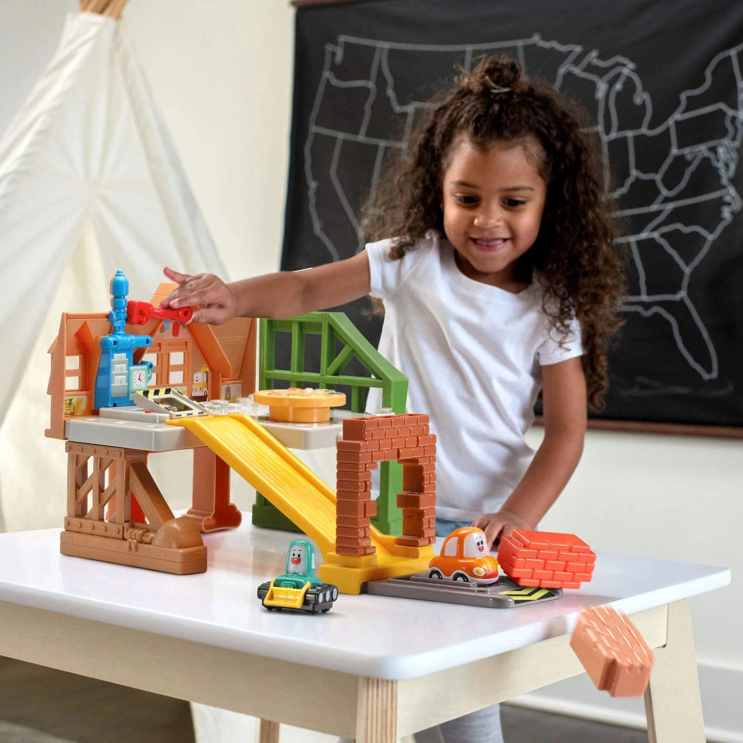 Вчимося і граємо разом з машинкою Корі і його друзями з оригінальної серії Go! Цей набір являє собою будівельний майданчик з цегляною стіною. Помістіть Корі і Тіммі на місце Play'one, щоб активувати фрази і звуки (близько 50+); персонажі сумісні з іншими наборами серії Go! (Інші набори продаються окремо).