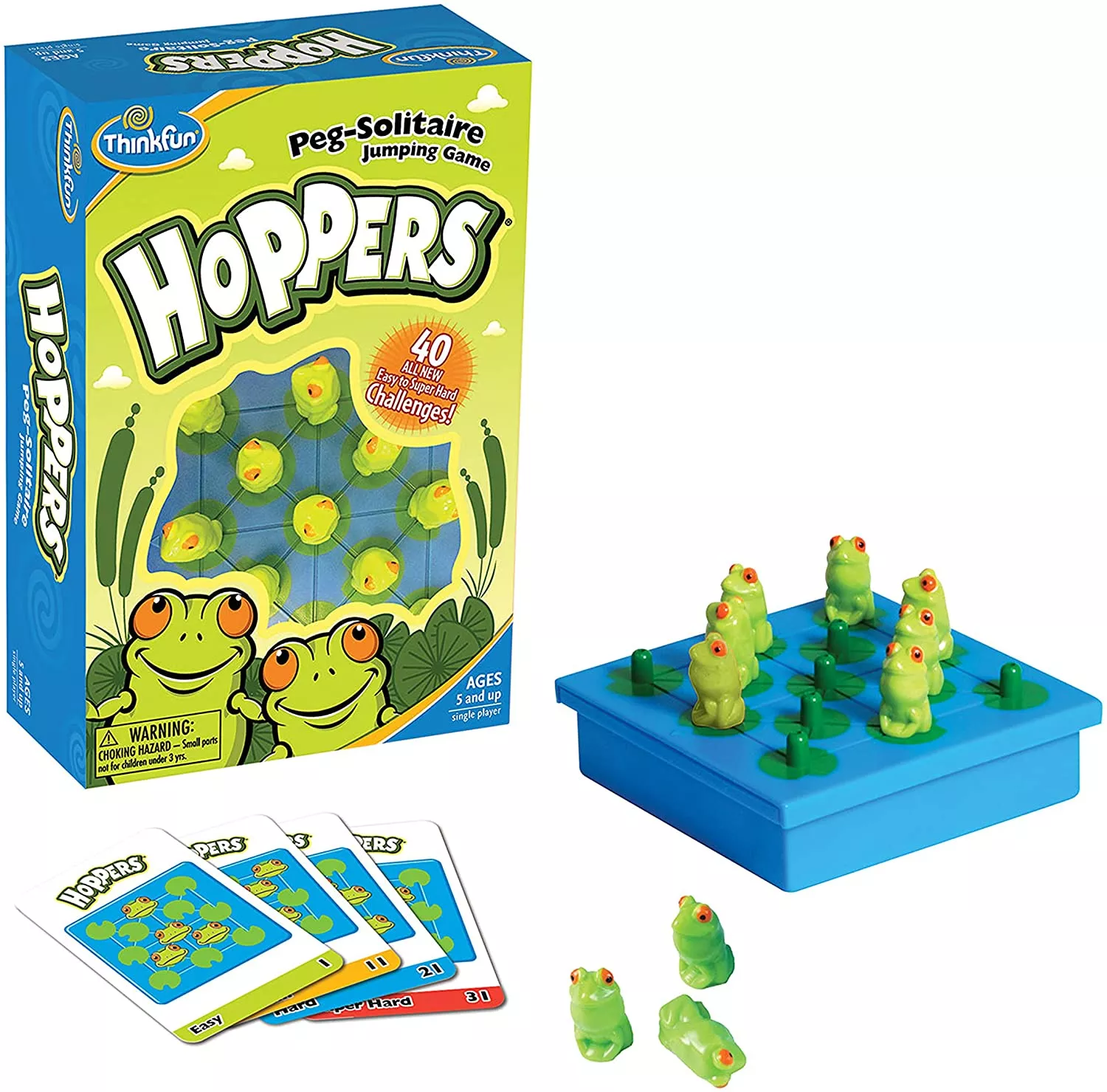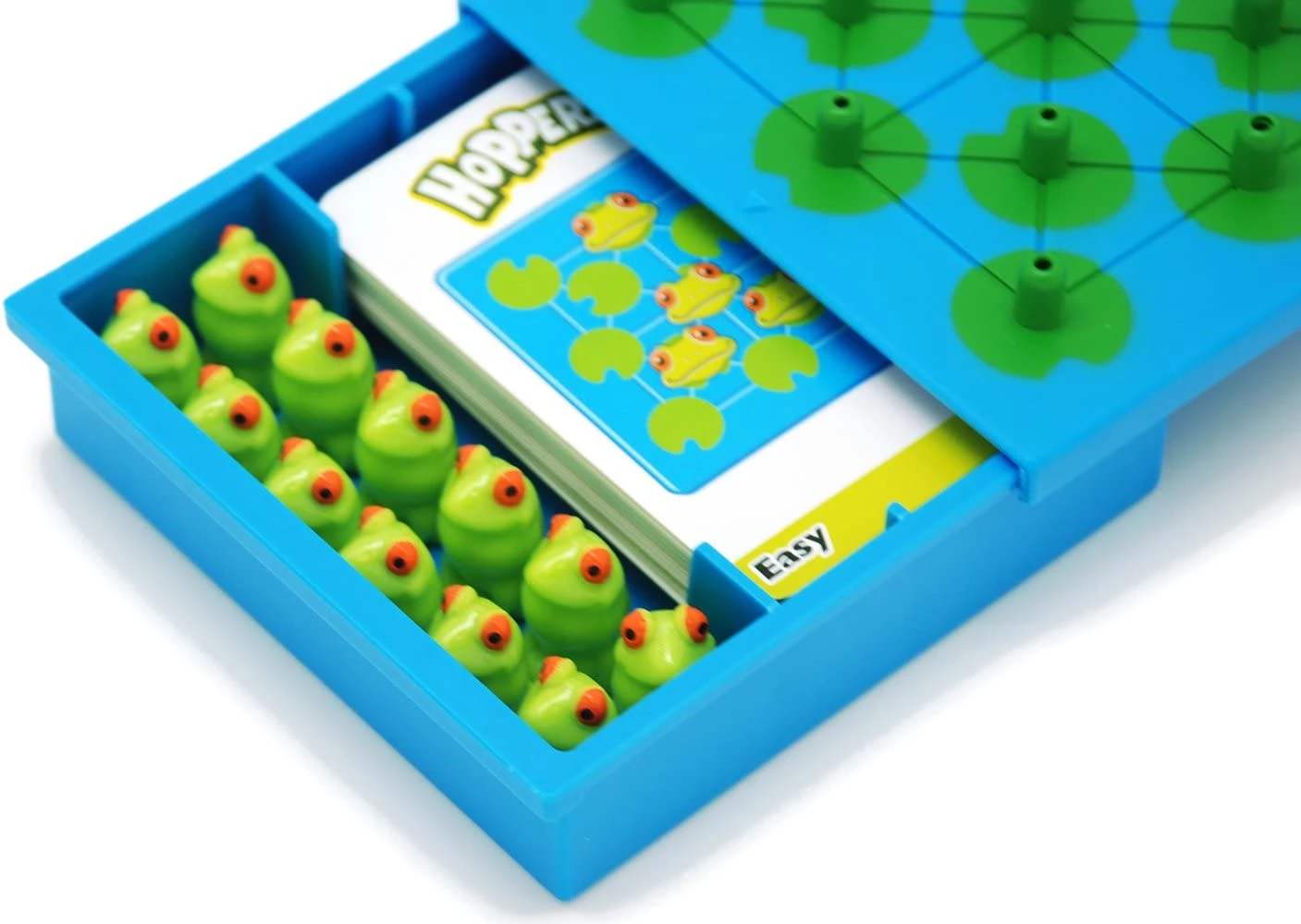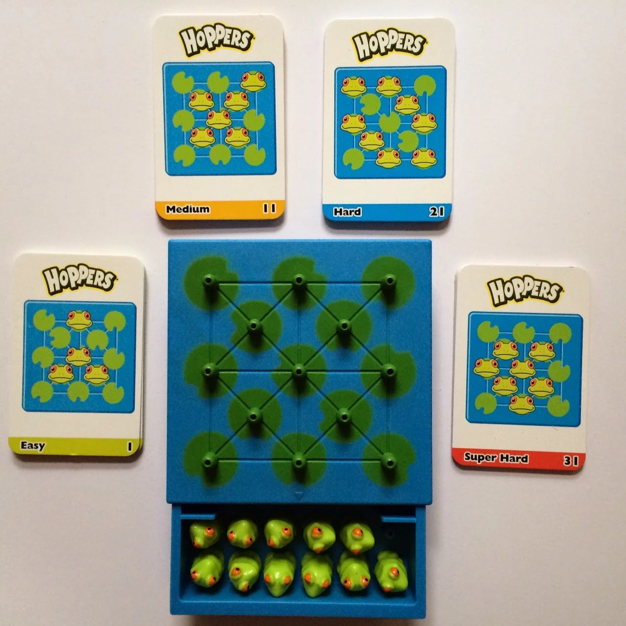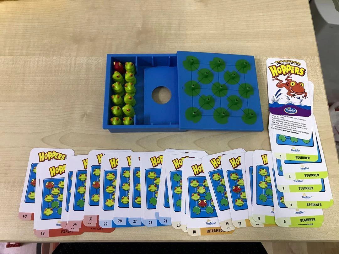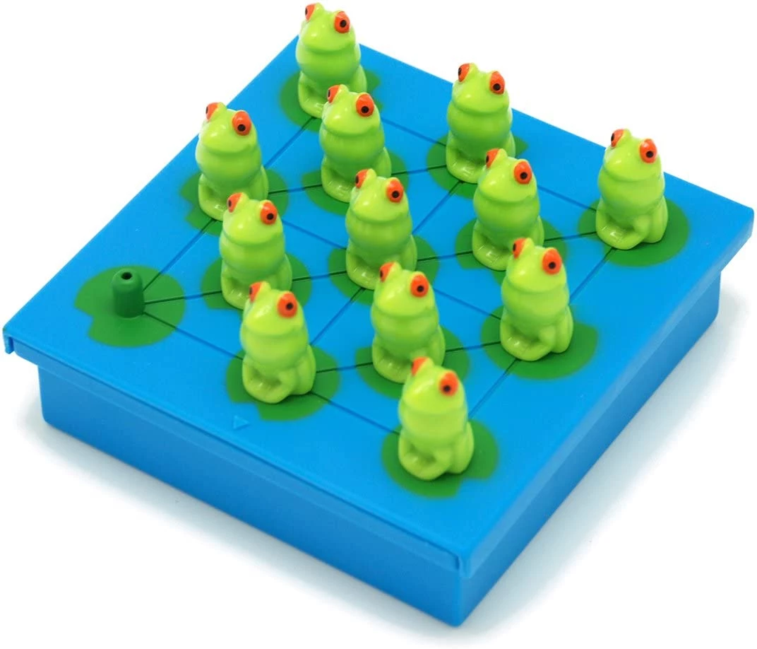 Жаби-непосиди обов'язково привернуть до себе увагу своїм яскравим і милим дизайном. Гра зроблена з міцного нетоксичного пластика. Суть гри в тому, щоб перестрибувати сусідні жаби, вирішуючи завдання з 40 карток. Гра чимось схожа на шашки. Треба зробити так, щоб на поле залишилася тільки одна жаба. Добре розвиває у багатьох напрямках, що позитивно впливає на розумові здібності. Ця гра захоплює на довгий час і має досить компактні розміри.