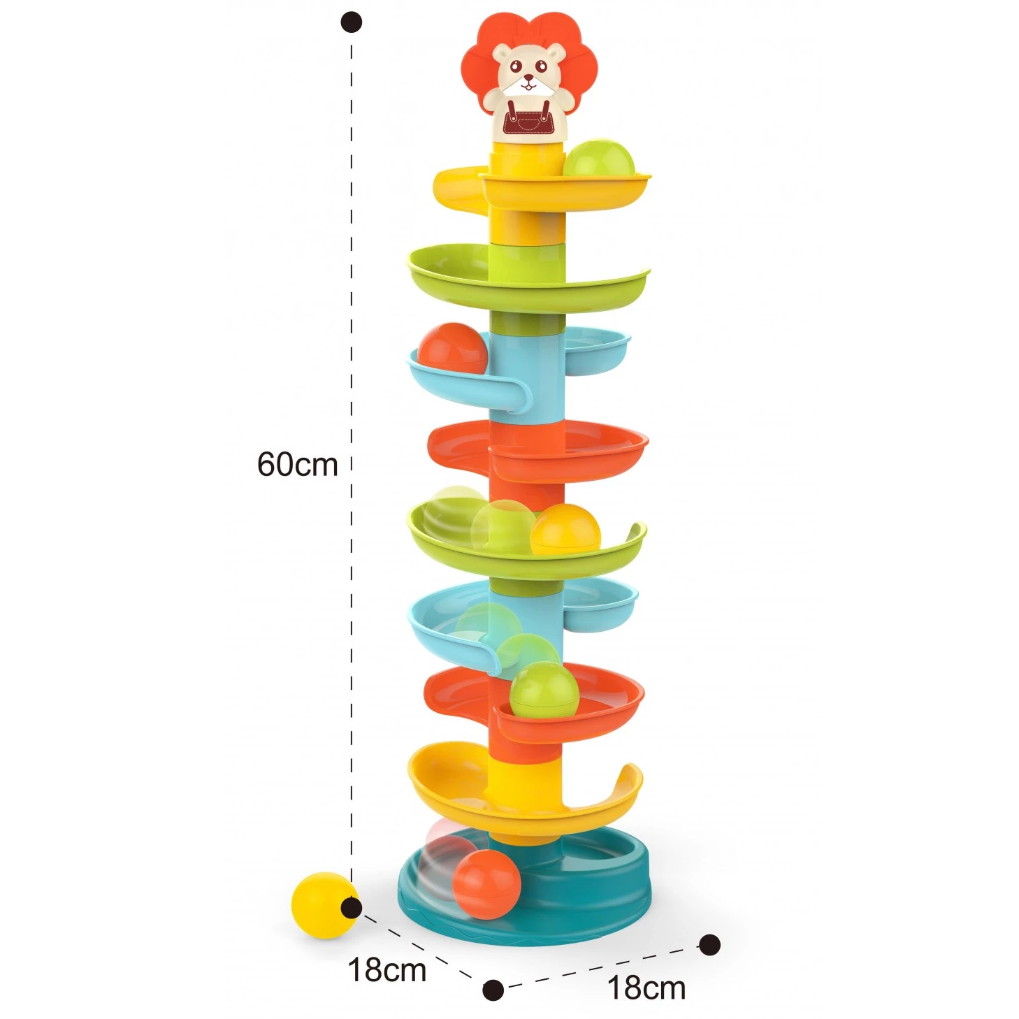 Порадуйте малюка корисним і цікавим для нього подарунком — розвиваюча іграшка «Гірка для кульок» розрахована на малюків від 18 місяців. Вона виконана в приємних, не дратівливих кольорах і досить проста в збиранні. Різнокольорова вежа з кульками та звірятком на верхівці надовго захопить допитливих малюків. Зібравши вежу-спуск з пластикових деталей, пускайте кульки, спостерігаючи, яка з них першою прийде до фінішу. У набір входить 6 м'ячиків з приємними елементами, які гримлять, що неодмінно приверне дитячу увагу.