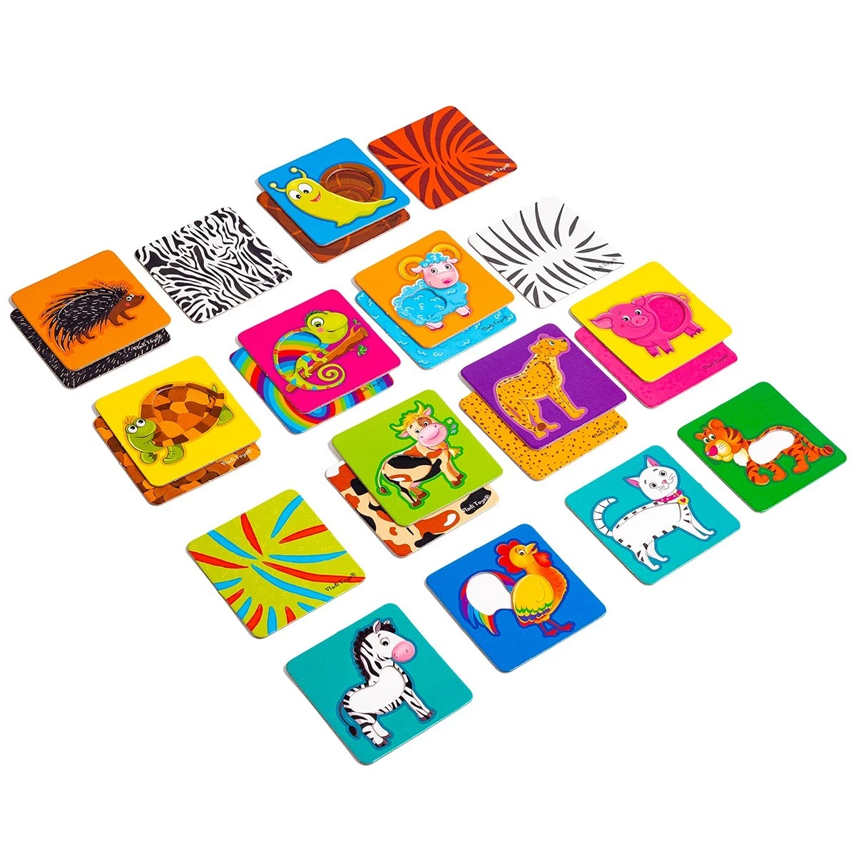 Набір включає картки із зображеннями різних тварин, а також картки із зображеннями їхніх бочків. Завдання гравця правильно скласти пари.