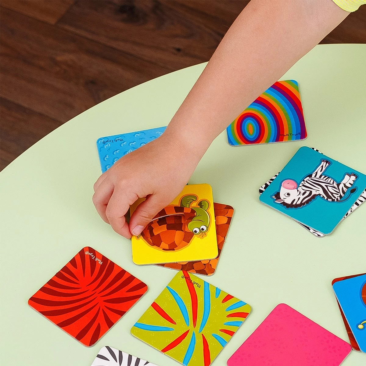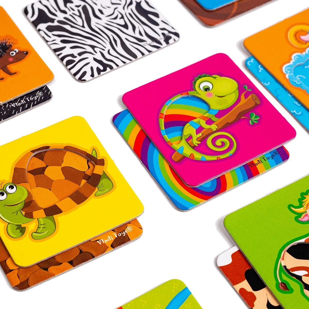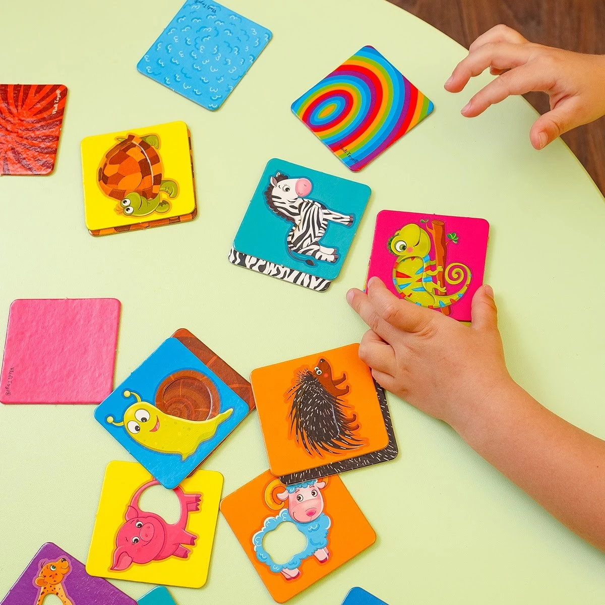 Ця гра допомагає в ігровій формі вивчити забарвлення тварин. Шукайте тварин за ознаками та грайте у меморі.