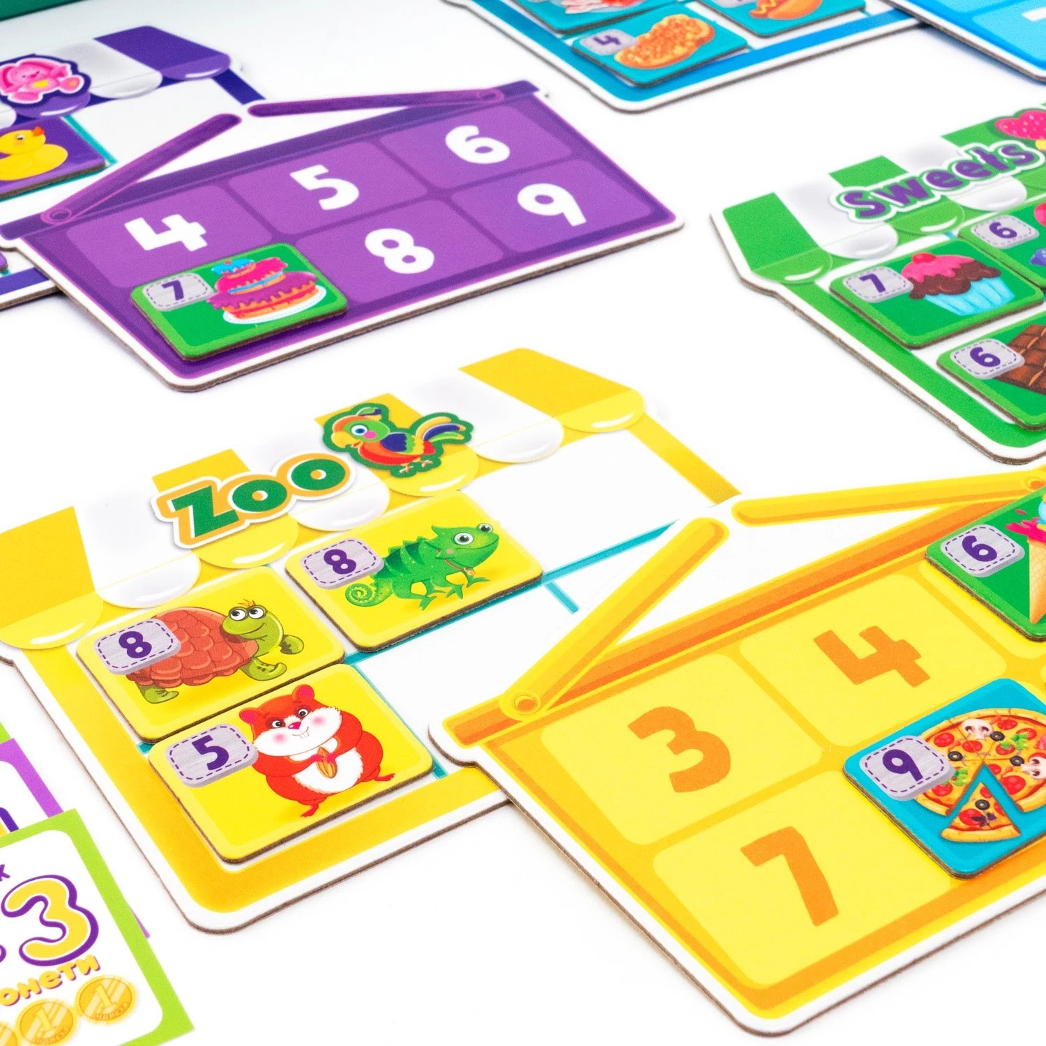 - 4 картки з магазинами.