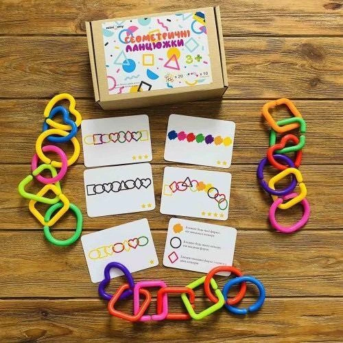Набір містить безліч цікавих завдань, які сприяють інтелектуальному розвитку вашої дитини. Комплект включає 10 карток із завданнями, що передбачають 4 рівні складності, 20 ланцюжків фігурок і додаткові завдання.