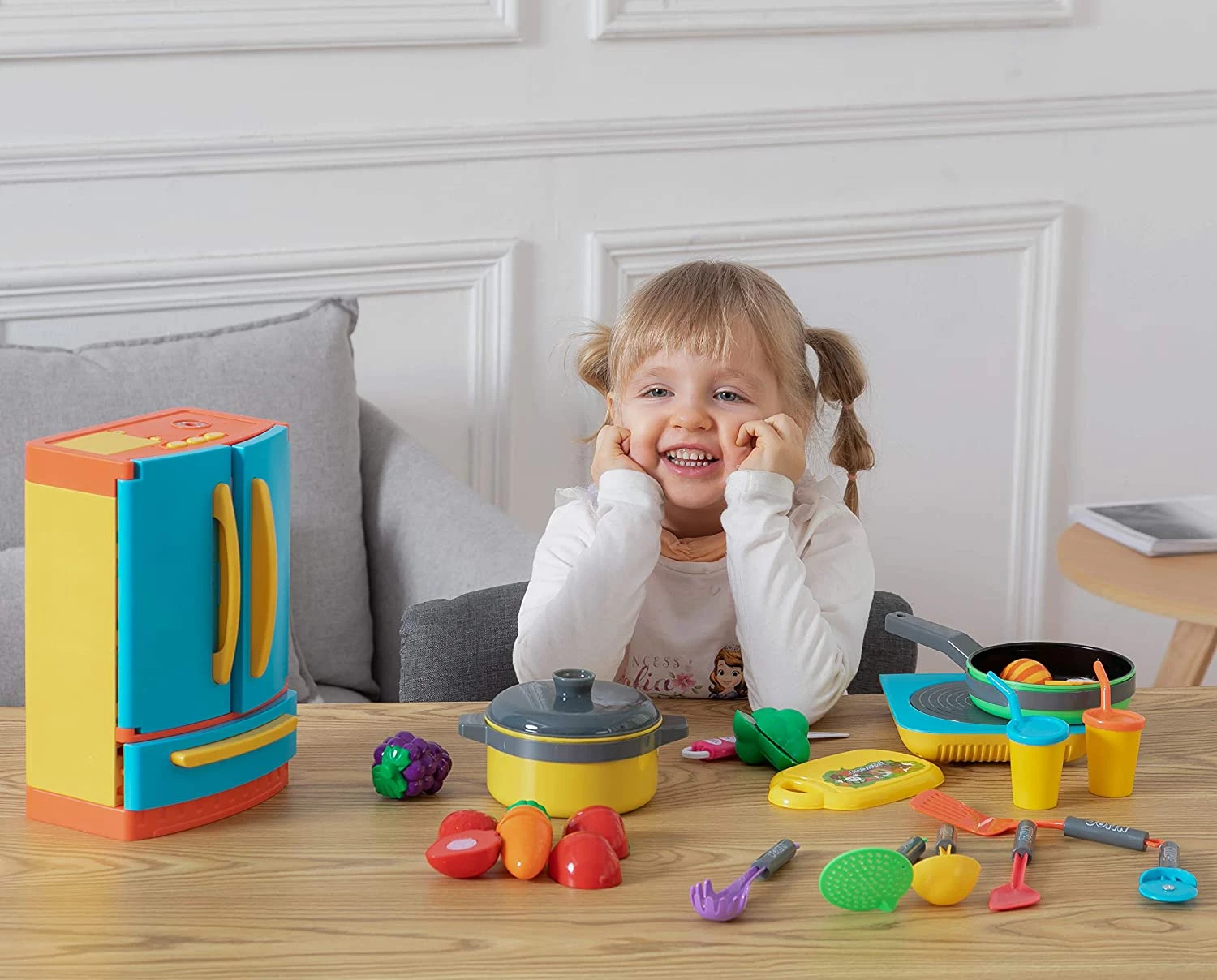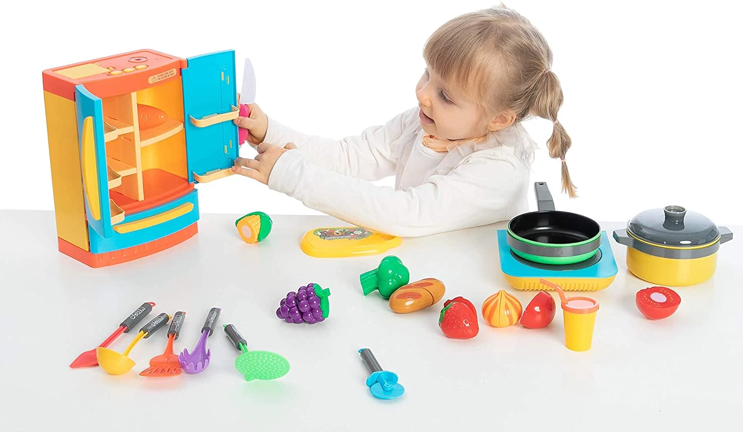 Діти можуть відкрити холодильник і покласти всередину нього продукти для більшої реалістичності. Гра розвиває у дітей дрібну моторику рук, уяву, прищеплює любов до готування.