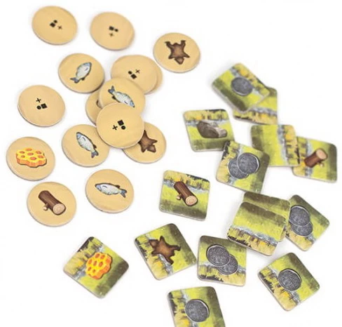 Серед товарів: хутро - 10 шт, Дерево - 16 шт, Руда - 12 шт, Риба - 16 шт, Мед-12 шт.