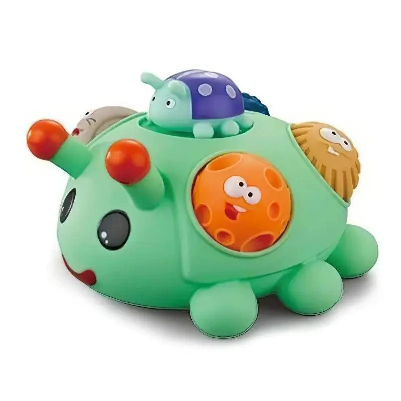 Ця іграшка для купання включає 4 текстурованих сенсорних м'ячика різних форм і розмірів, а також велику іграшку у вигляді божої корівки. Різноманітність текстур та рельєфних малюнків на м'ячах стимулює тактильні відчуття вашої дитини та допомагає розвивати здатність хапати, розпізнавати кольори, тренувати навички класифікації розмірів. М'ячики з різною текстурою заохочують дослідження та стимулюють сенсорний розвиток. Малята можуть кидати, ловити і навіть жувати ці м'які, безпечні для ігор м'ячики. Вони також сприяють розвитку дрібної моторики.