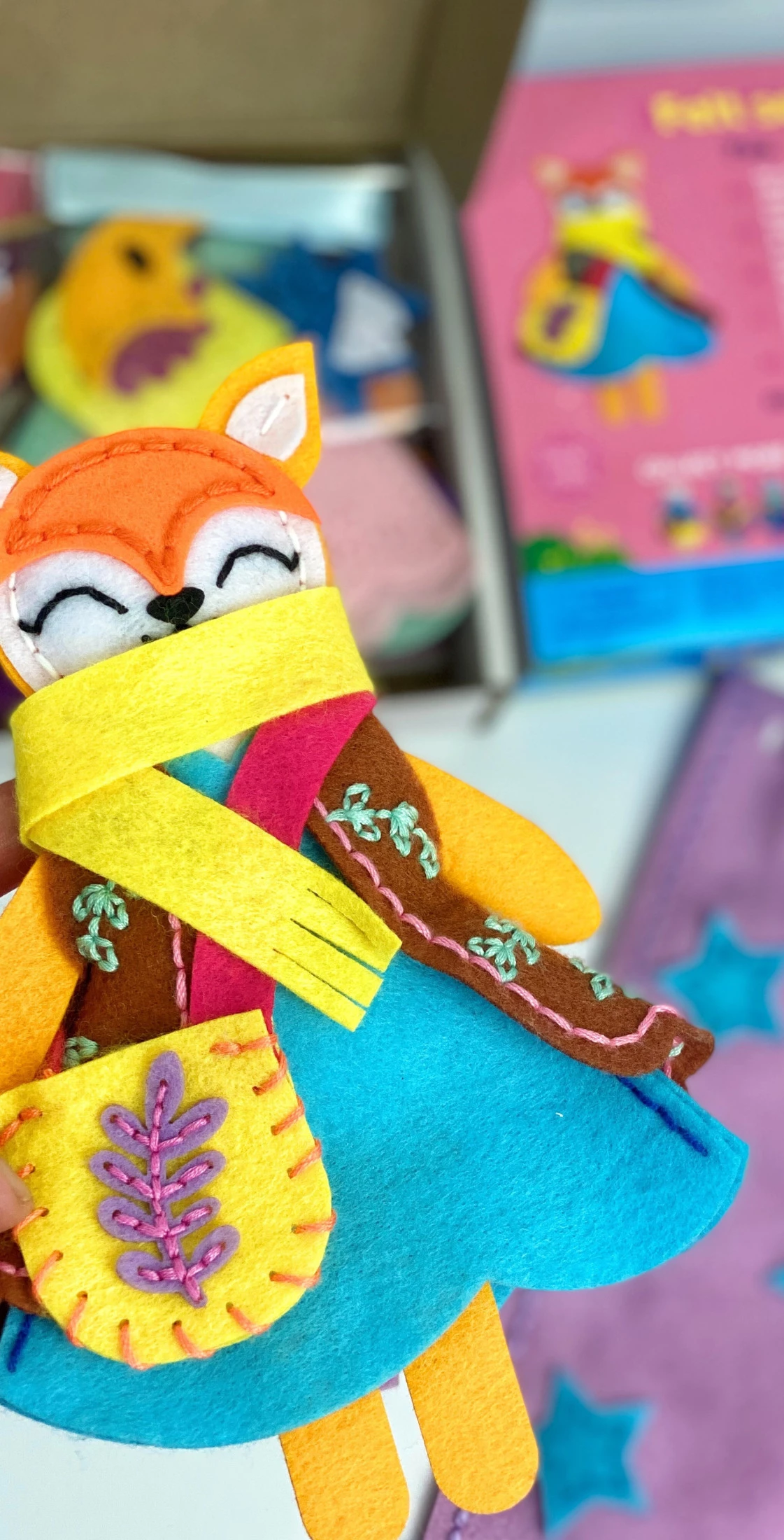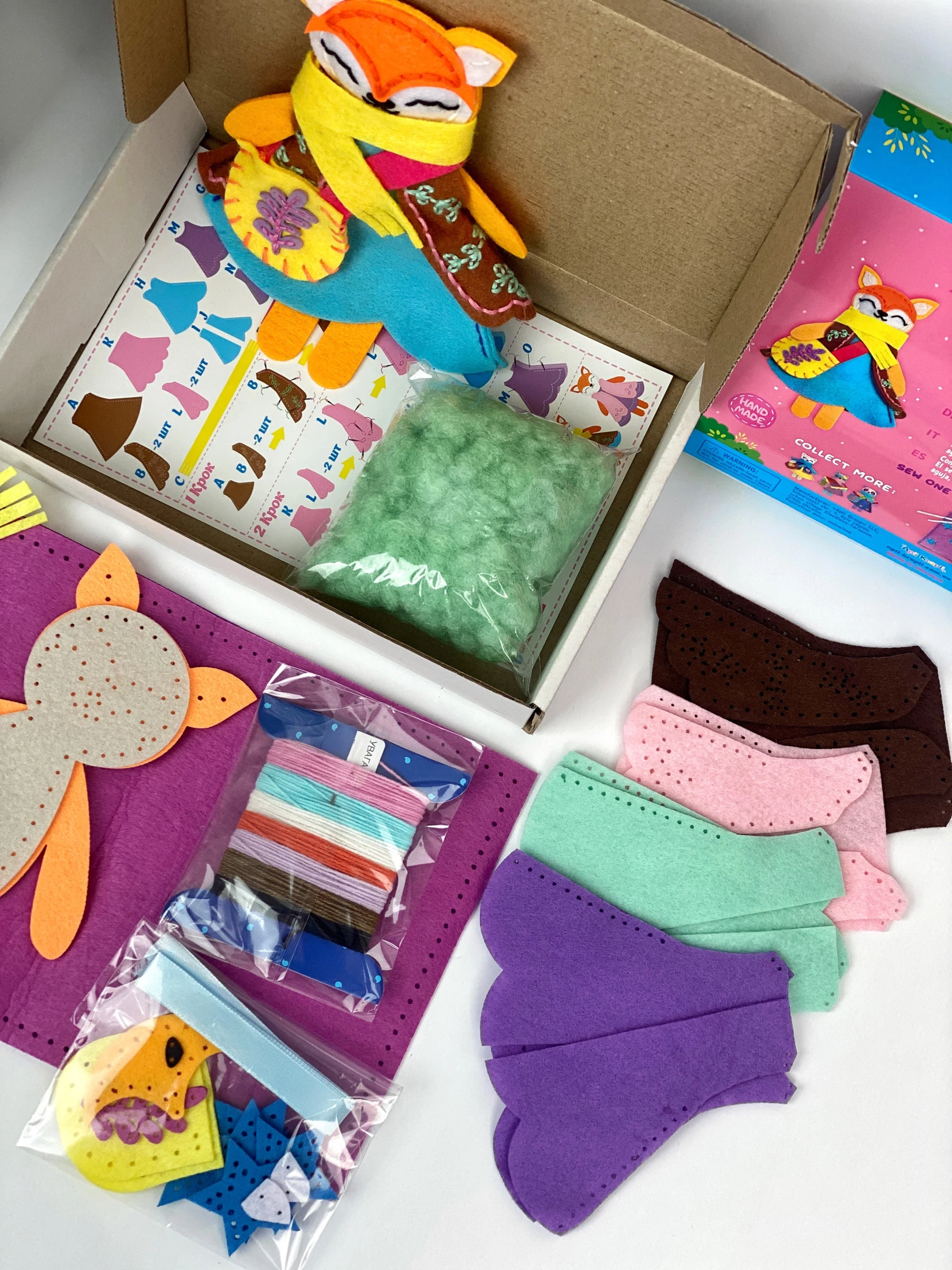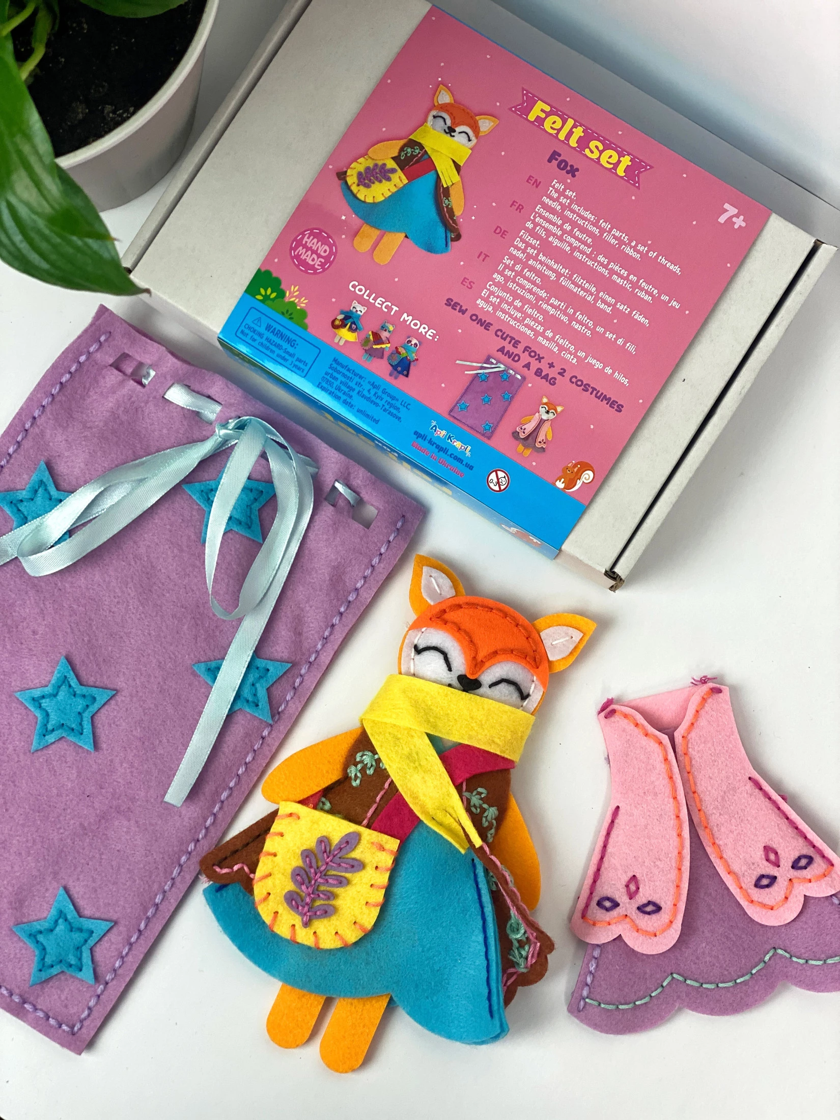 Цей набір для рукоділля з фетру — чудовий подарунок для дітей, який познайомить їх із процесом створення фетрових іграшок. Щоб створити іграшку не знадобляться ножиці — всі необхідні деталі попередньо вирізані виробником. Їх залишається лише правильно зшити одну з одною, використовуючи покрокову інструкцію.