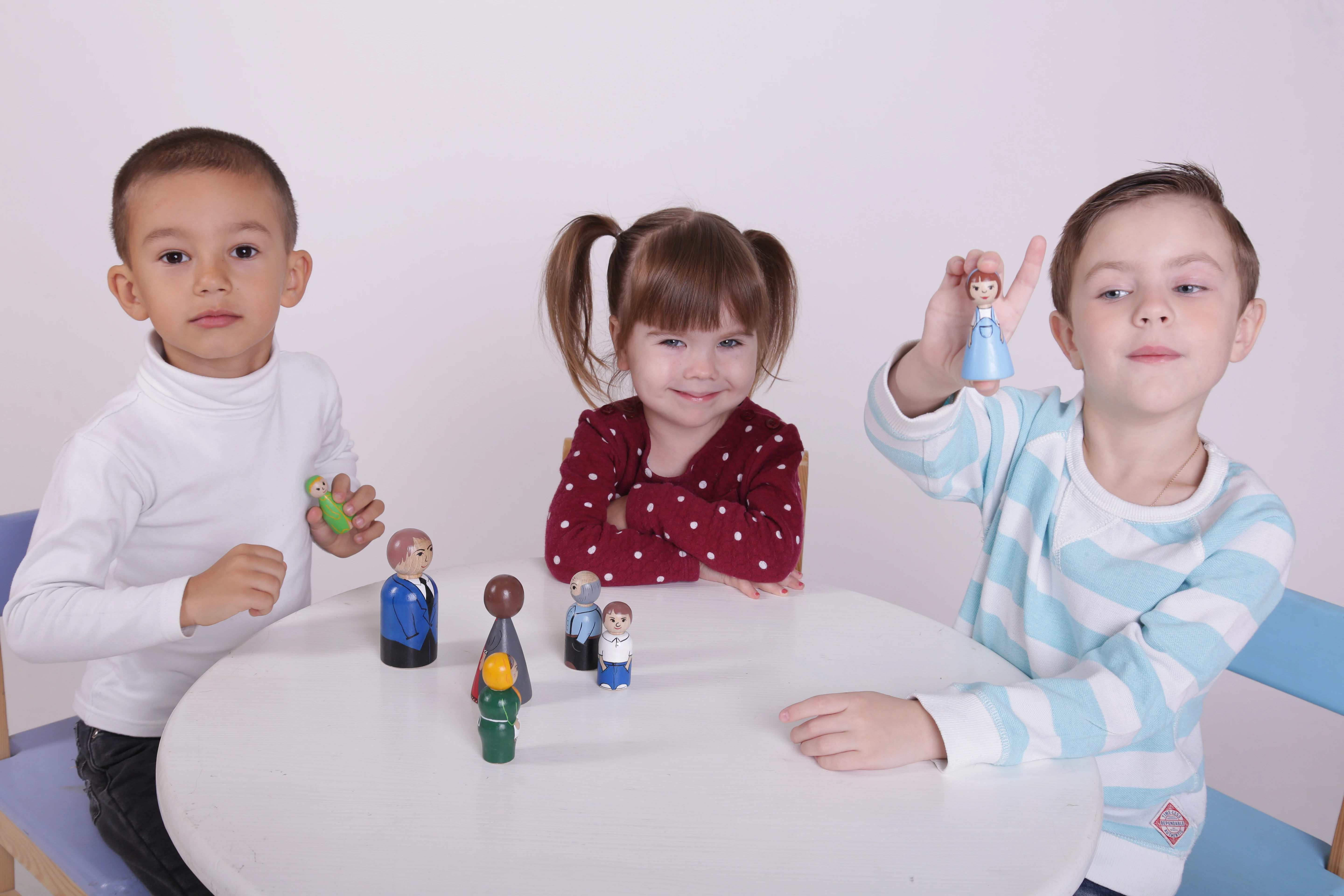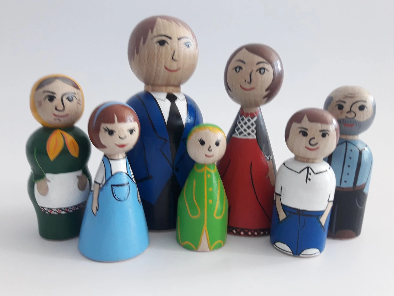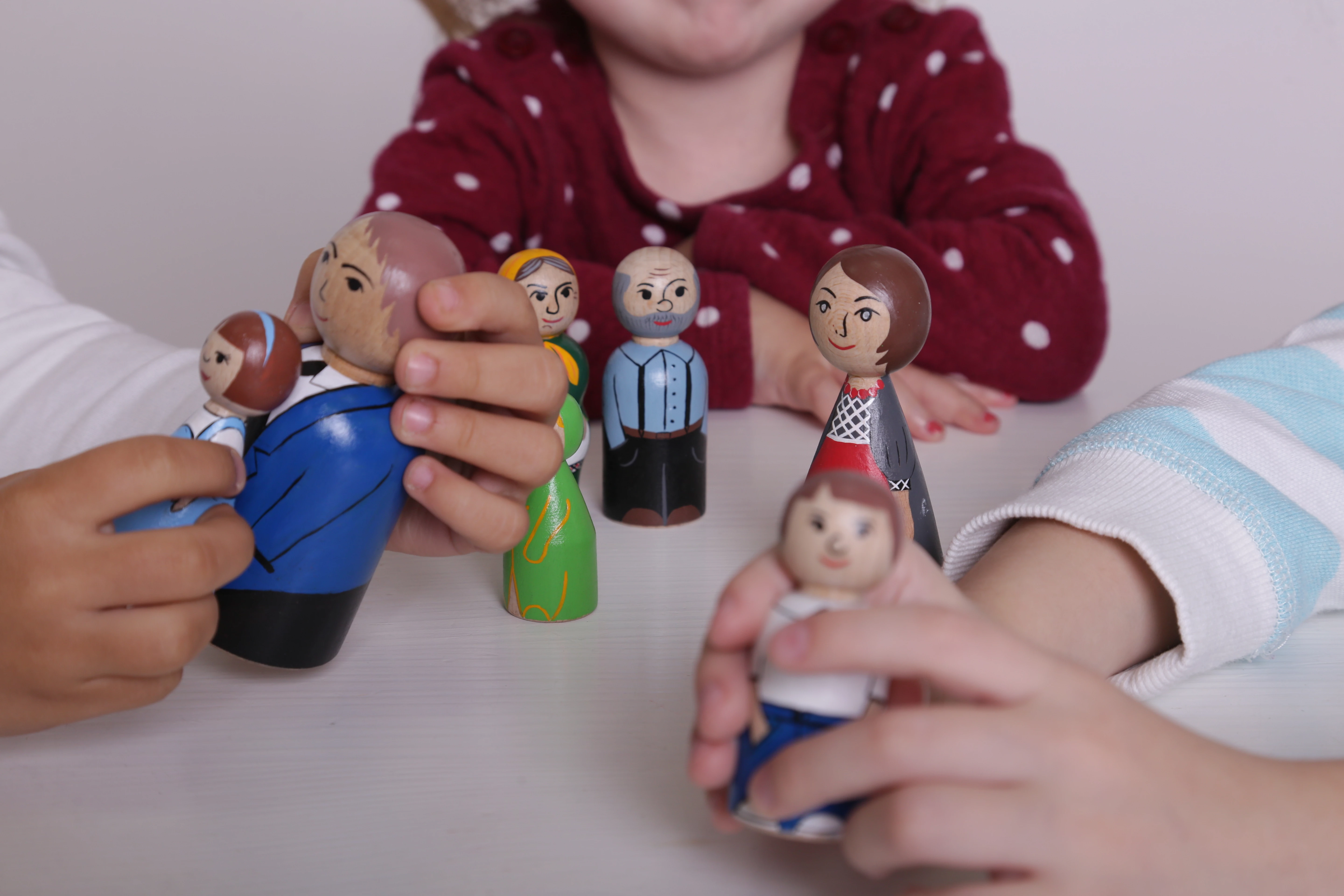 Набір «Сім'я» від торгової марки Hega включає 7 дерев'яних фігурок: тата, мами, бабусі, дідуся, а також трьох діточок. Всі фігурки виготовлені з цільного дерева і не мають знімних деталей, що робить цей набір придатним для роботи з дітьми віком від двох років. Такий ігровий комплект може використовуватись у роботі логопедів, методистів та психологів, а також у реабілітаційних центрах та інклюзивних класах.