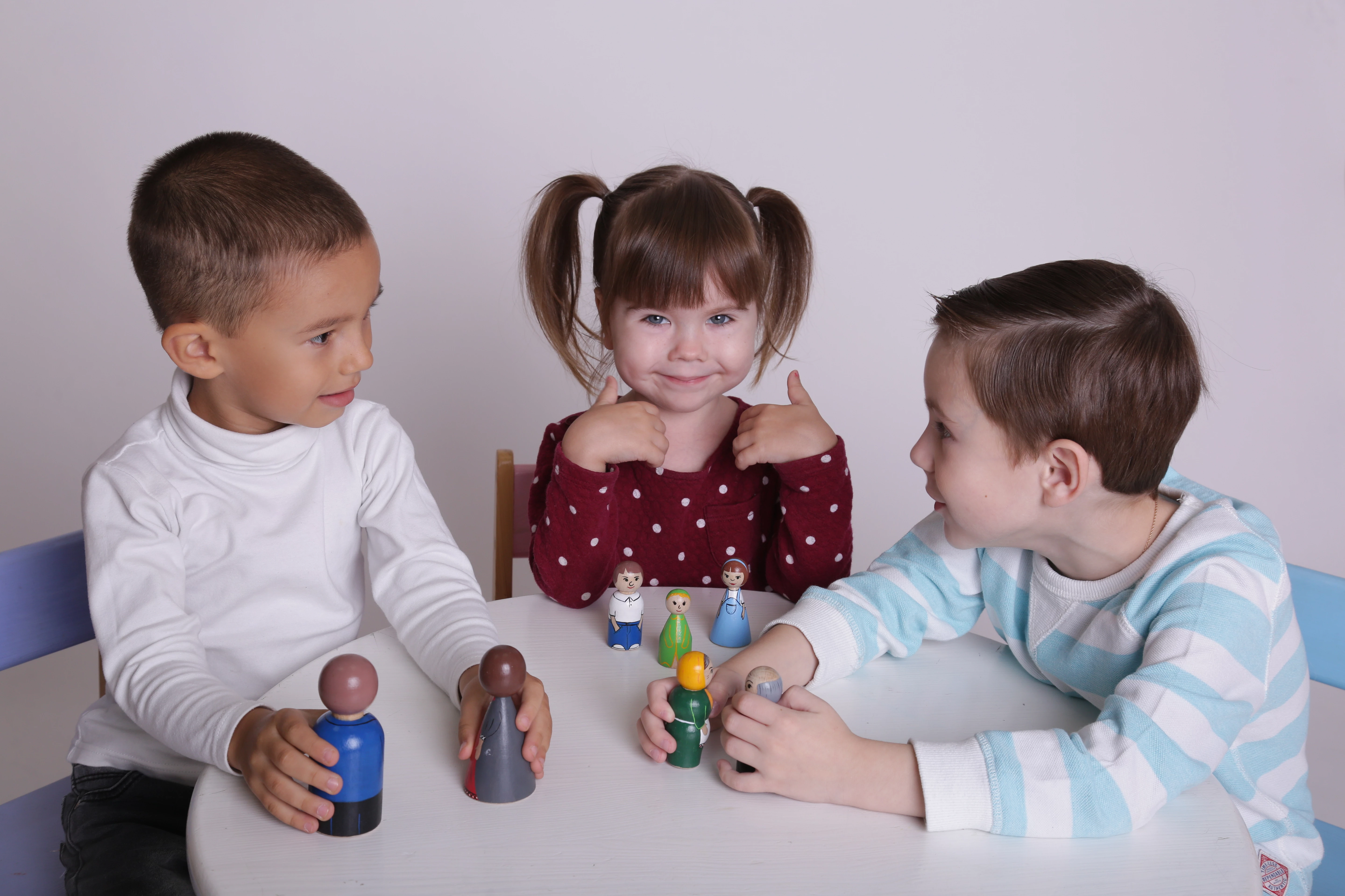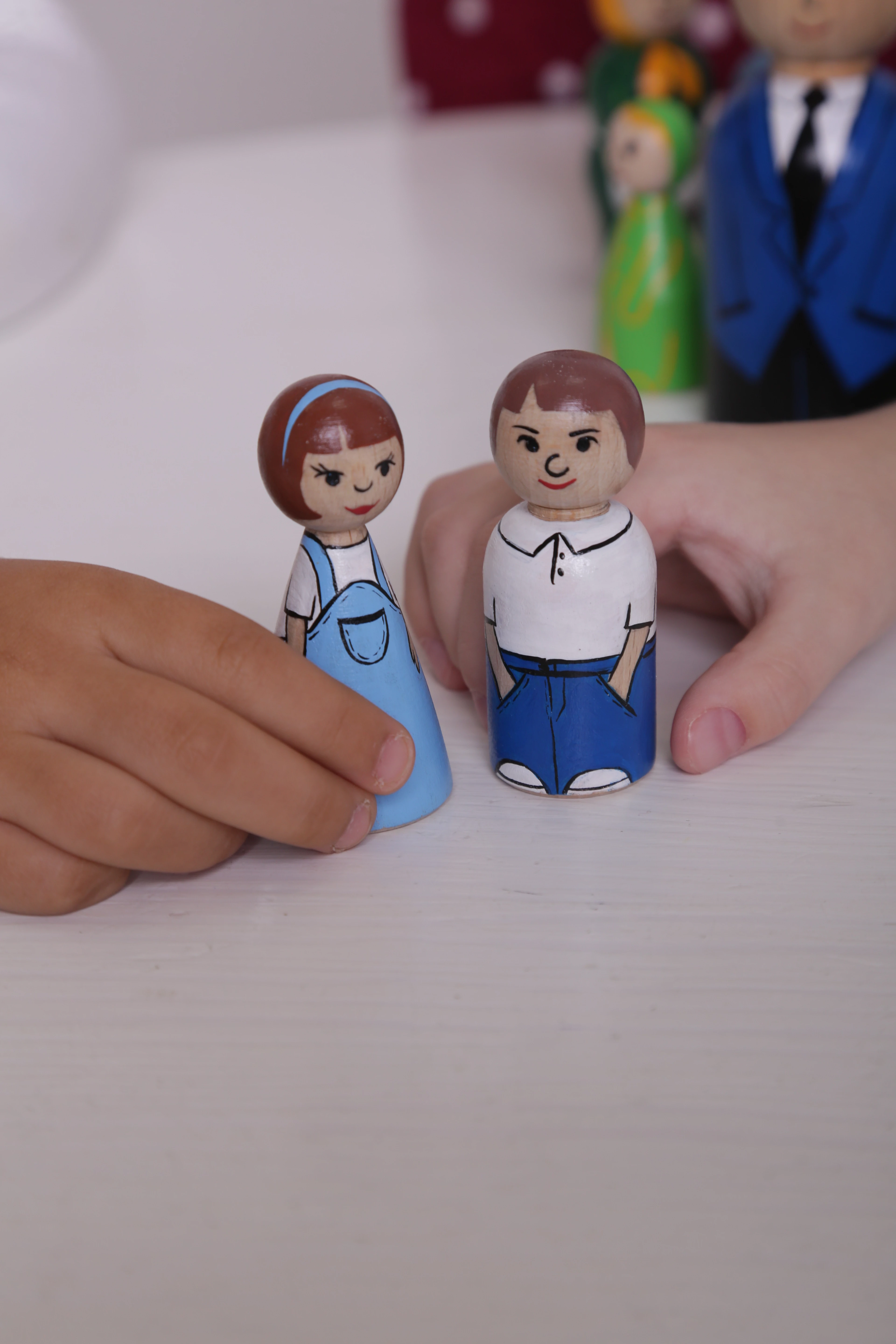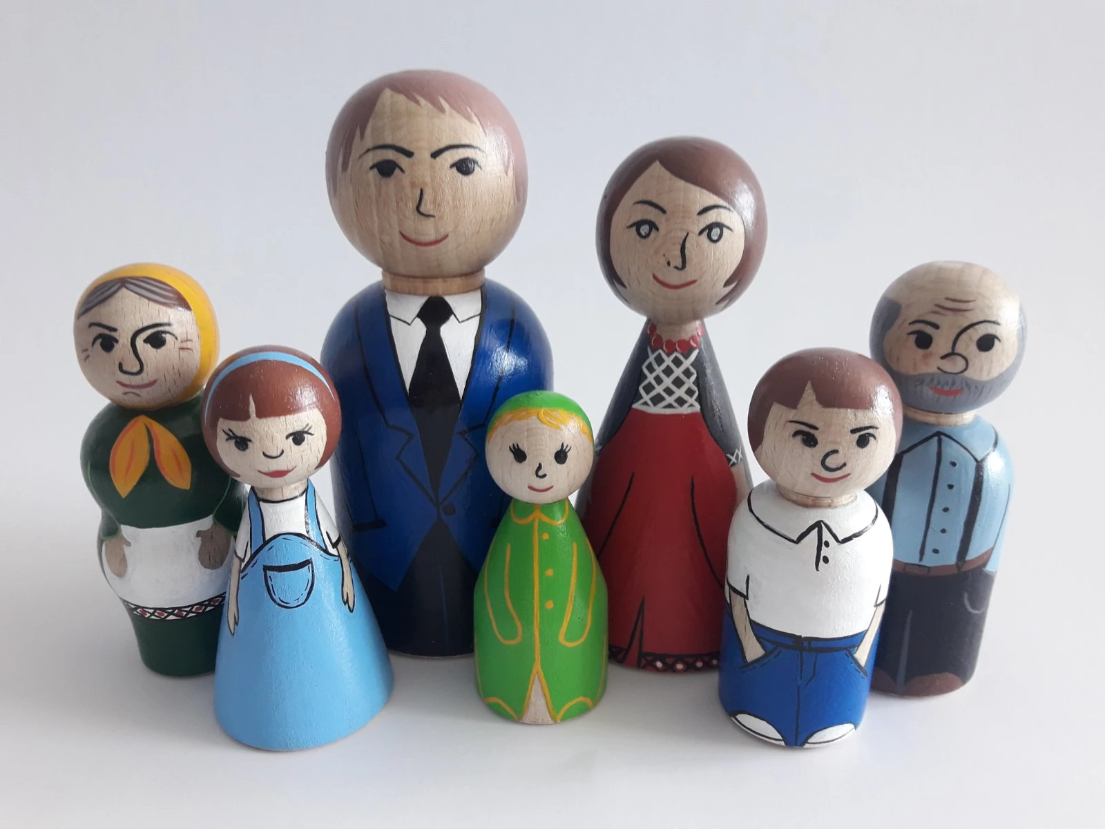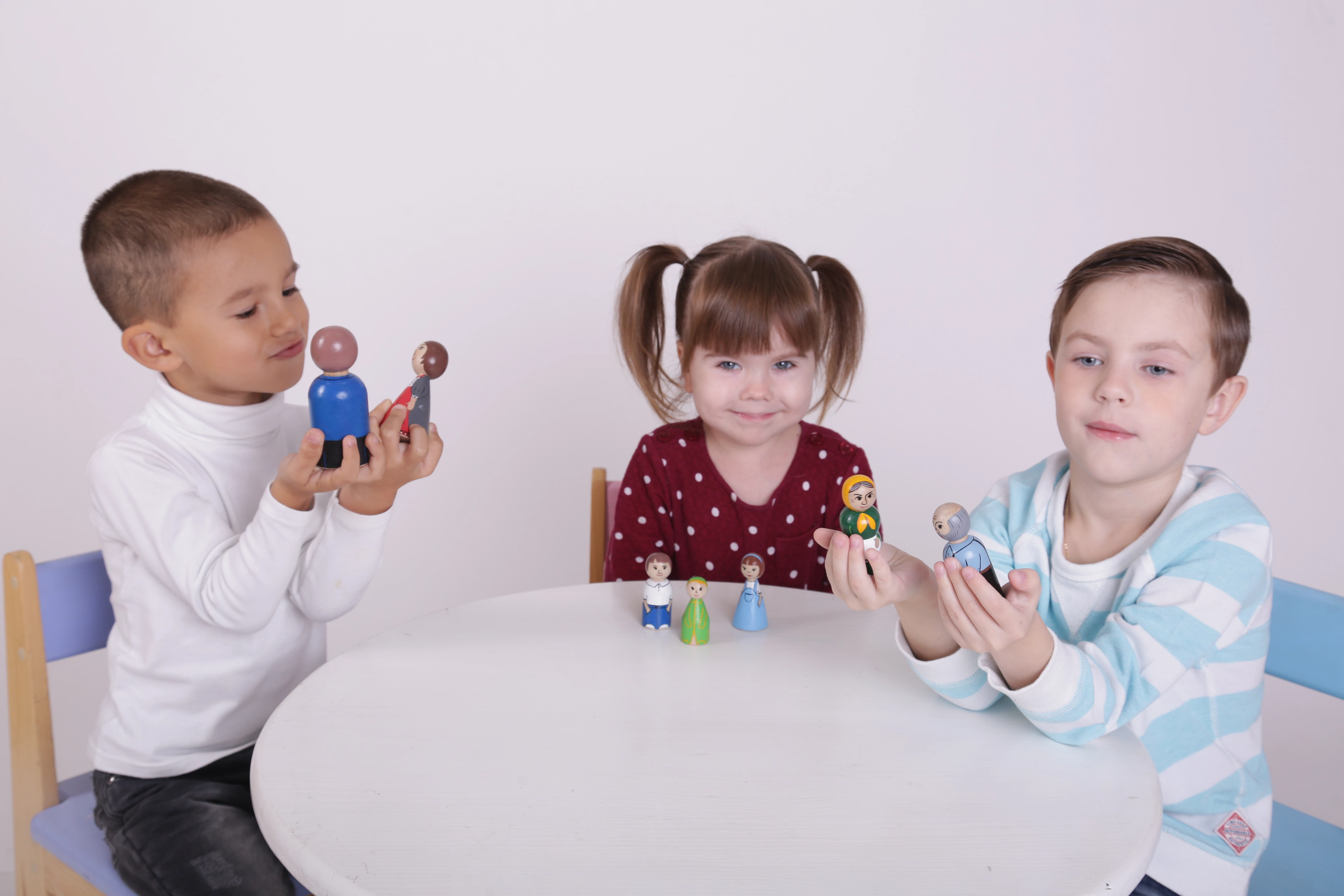 Набір «Сім'я» від торгової марки Hega включає 7 дерев'яних фігурок: тата, мами, бабусі, дідуся, а також трьох діточок. Всі фігурки виготовлені з цільного дерева і не мають знімних деталей, що робить цей набір придатним для роботи з дітьми віком від двох років. Такий ігровий комплект може використовуватись у роботі логопедів, методистів та психологів, а також у реабілітаційних центрах та інклюзивних класах.