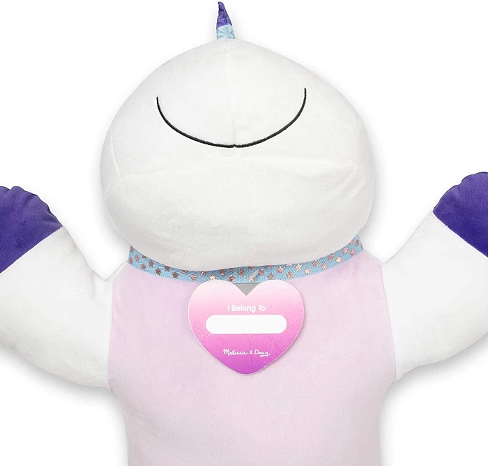М'яка іграшка-подушка Єдиноріг, яка створена відомою американською компанією Melissa & Doug, приверне до себе увагу своїм яскравим дизайном та розмірами. Ця велика та приємна на дотик іграшка підходить і для ігор, і для обіймашок. З нею маленькі фантазери зможуть вигадати безліч цікавих сюжетів для своїх ігор, залучаючи до ігрового процесу друзів чи батьків. Ще одне призначення цієї чарівної тварини – служити зручною подушкою для діток, супутником дитячих снів у нічний та денний час.