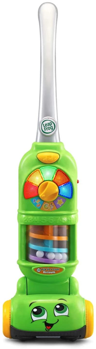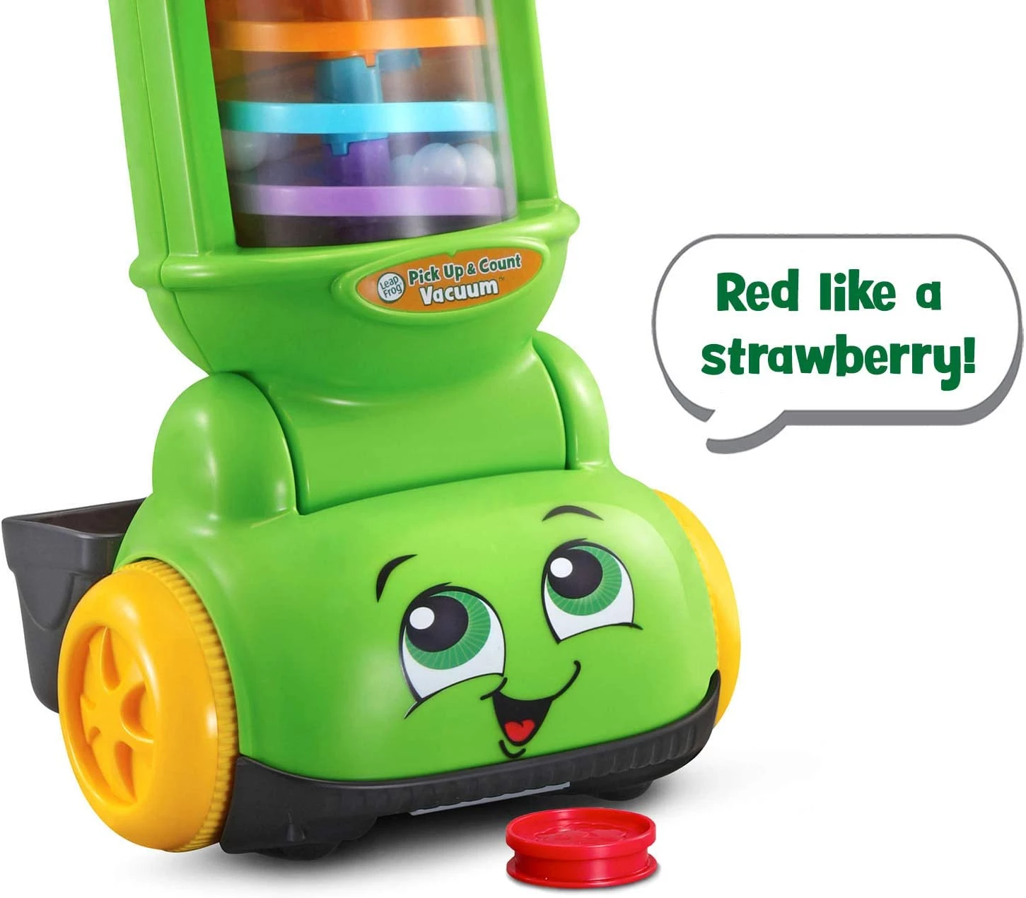 Цікавий дитячий пилосос призначений для розвитку кругозору і вивчення кольорів і чисел. Він затягує всередину спеціальні різнокольорові шайби, чітко називаючи якого вони кольору.