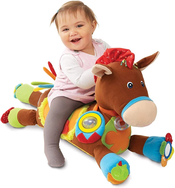 Яскраві, рельєфні сенсорні килимки у вигляді тварин сприяють розвитку тактильного сприйняття, координації рухів і моторики. Набір складається з 12 безпечних і легко миючихся елементів. Підходить для занять вдома та в дитячих центрах розвитку, забезпечує фізичний розвиток дітей раннього віку. - Розвиваюча м’яка іграшка Мультисенсорна конячка від Melissa & Doug.
