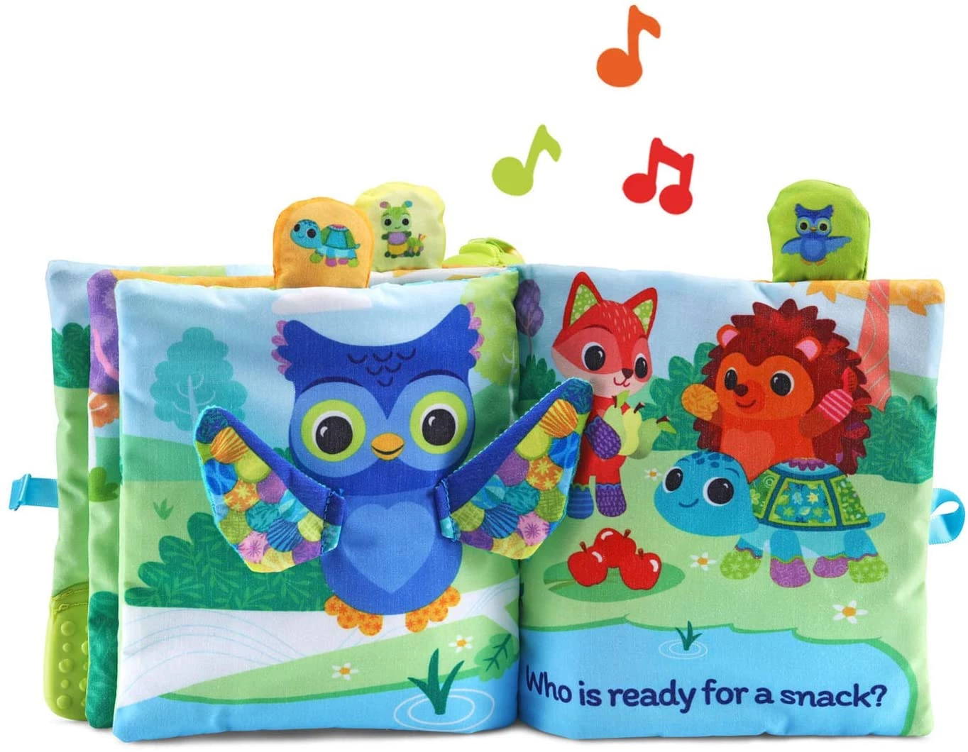 Сім інтерактивних сторінок включають сюрпризи на кожній сторінці цієї м'якої книги з відкидним верхом; тканинні сторінки можна прати. На кожній сторінці розташовані веселі тварини (черепаха, гусениця і їжачок), на яких можна натискати, і вони будуть видавати різні звуки. Кнопка з підсвічуванням у вигляді серця відтворює веселі мелодії і підспівує пісні. Кнопка з сердечком відтворює безліч веселих пісень і мелодій. Дитина зможе познайомитися з різними текстурами і кольорами. Це чудовий розвиваючий подарунок на будь-яке свято.