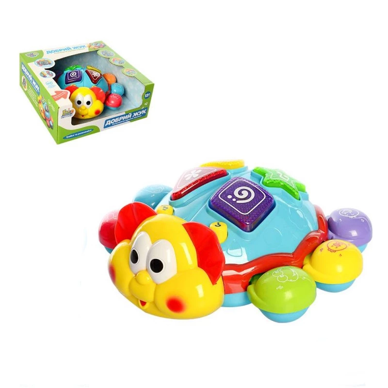 Цей милий і яскравий жук може самостійно рухатися кімнатою, привертаючи увагу веселими мелодіями. Якщо він зустрічає перешкоду, то за допомогою спеціального коліщатка розвертається і біжить далі. Крім того, іграшка дозволяє вивчати букви та цифри. Кожна лапка інтерактивного жука є кнопкою із зображенням літери. Іграшка сприяє розвитку зорової пам'яті та концентрації уваги, вчить дитину розрізняти форми предметів, а також кольори.