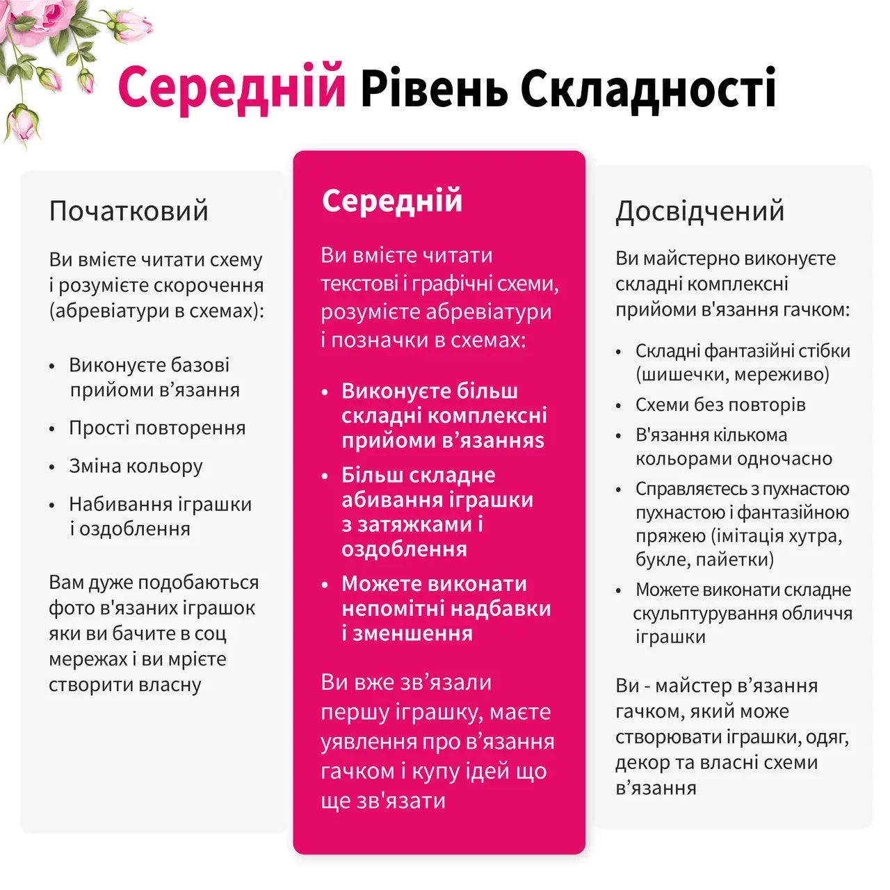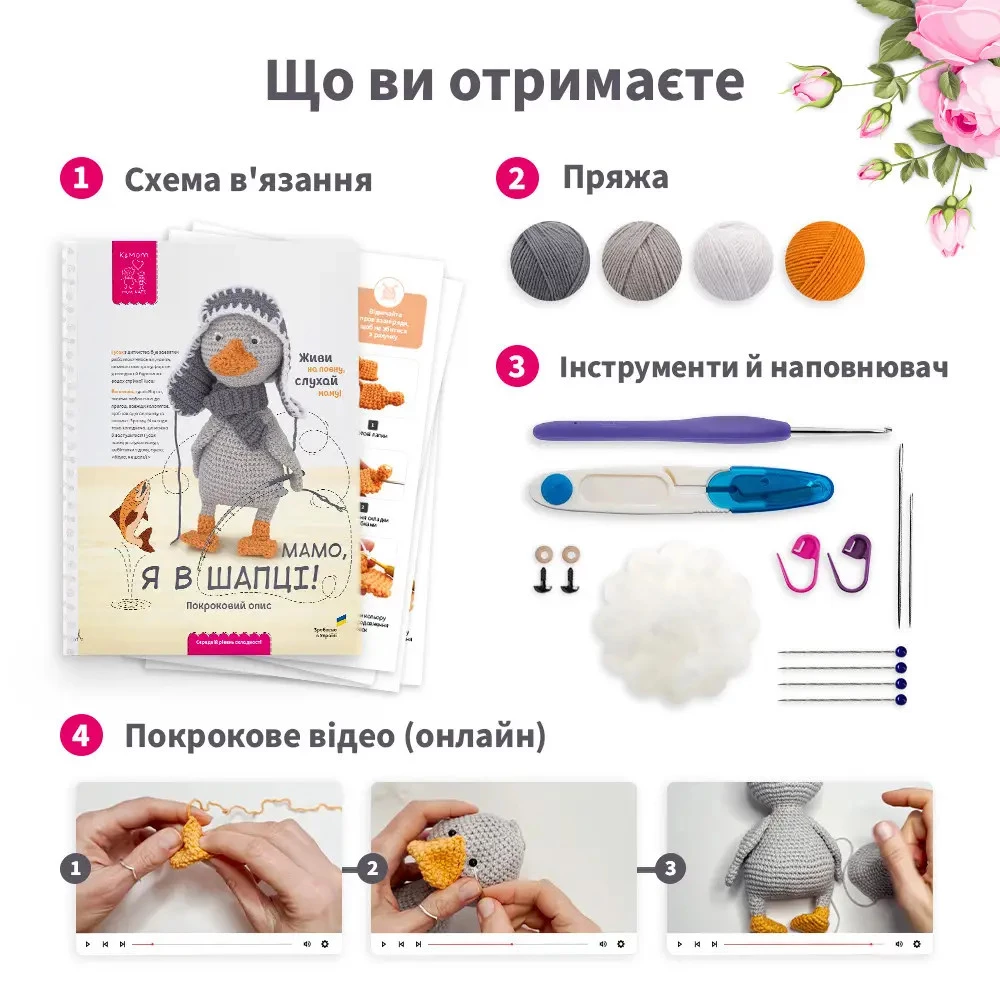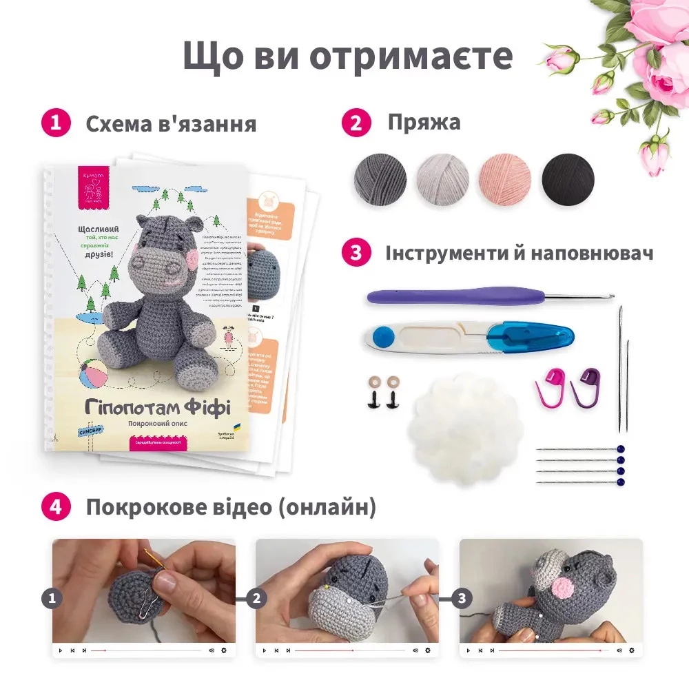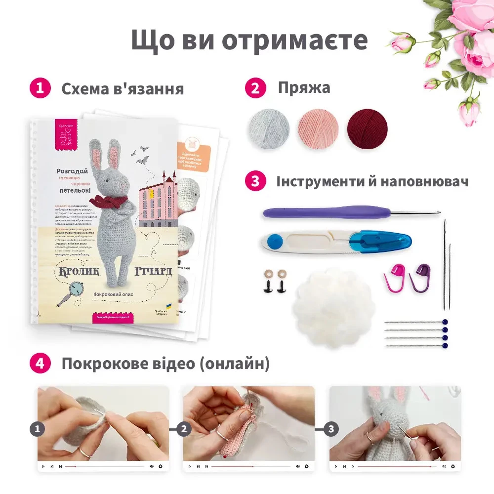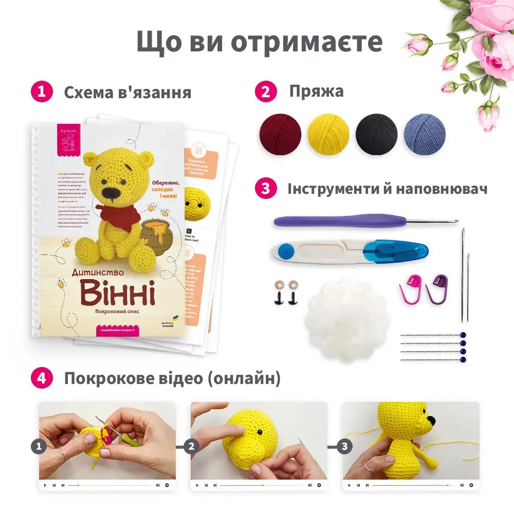 Даний набір — чудовий подарунок для дітей, які цікавляться рукоділлям та люблять творчість. Він дарує можливість потренувати творчі навички та спробувати щось нове. Результатом творчої роботи стане одна з найкрасивіших м'яких іграшок. Це може бути Вінні Пух, Кролик Річард, Гіпопотам Фіфі та Гусеня. Красиві унікальні речі, в'язані гачком, можна використовувати як іграшки, для прикраси інтер'єру і як подарунок близькій людині.